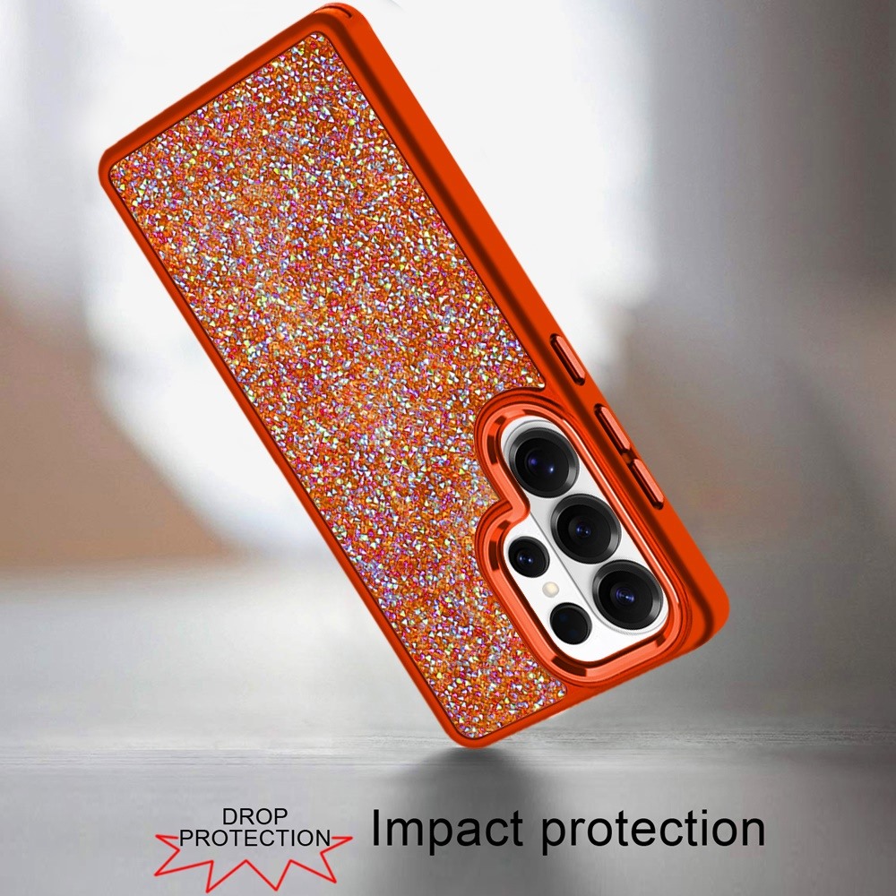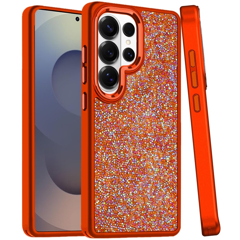 For Samsung s25 Ultra Crystal Glass Diamond with Metallic Buttons and Edges Hybrid Case - Cosmic Orange