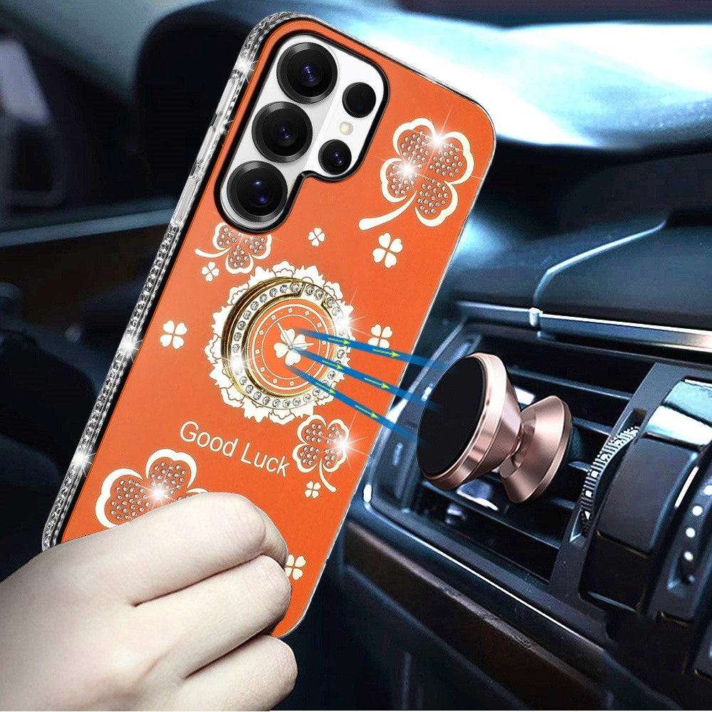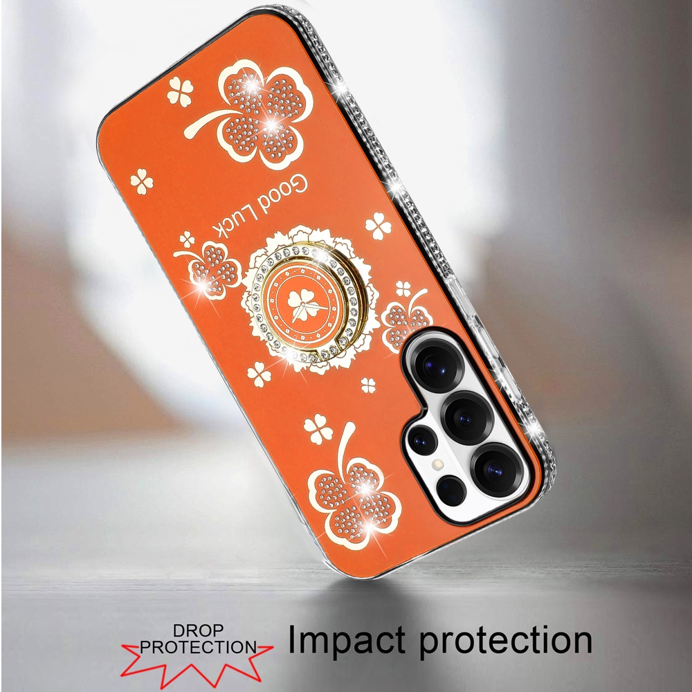 For Samsung s25 Ultra Splendid Glitter with Diamonds All Around Edges Ring Stand Case Cover - Cosmic Orange