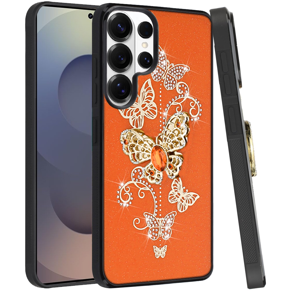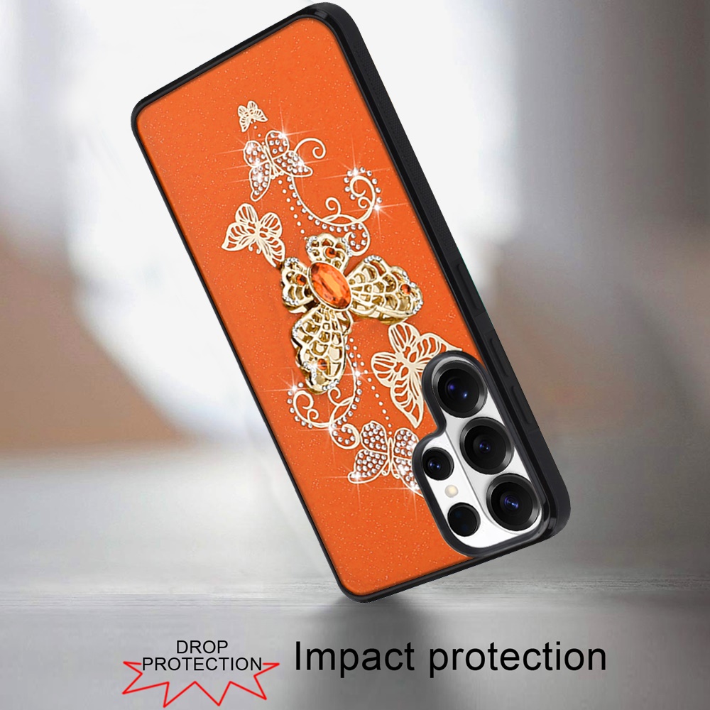 For Samsung s25 Ultra SPLENDID Diamond Glitter Ornaments Engraving Case Cover - Garden Butterflies Cosmic Orange