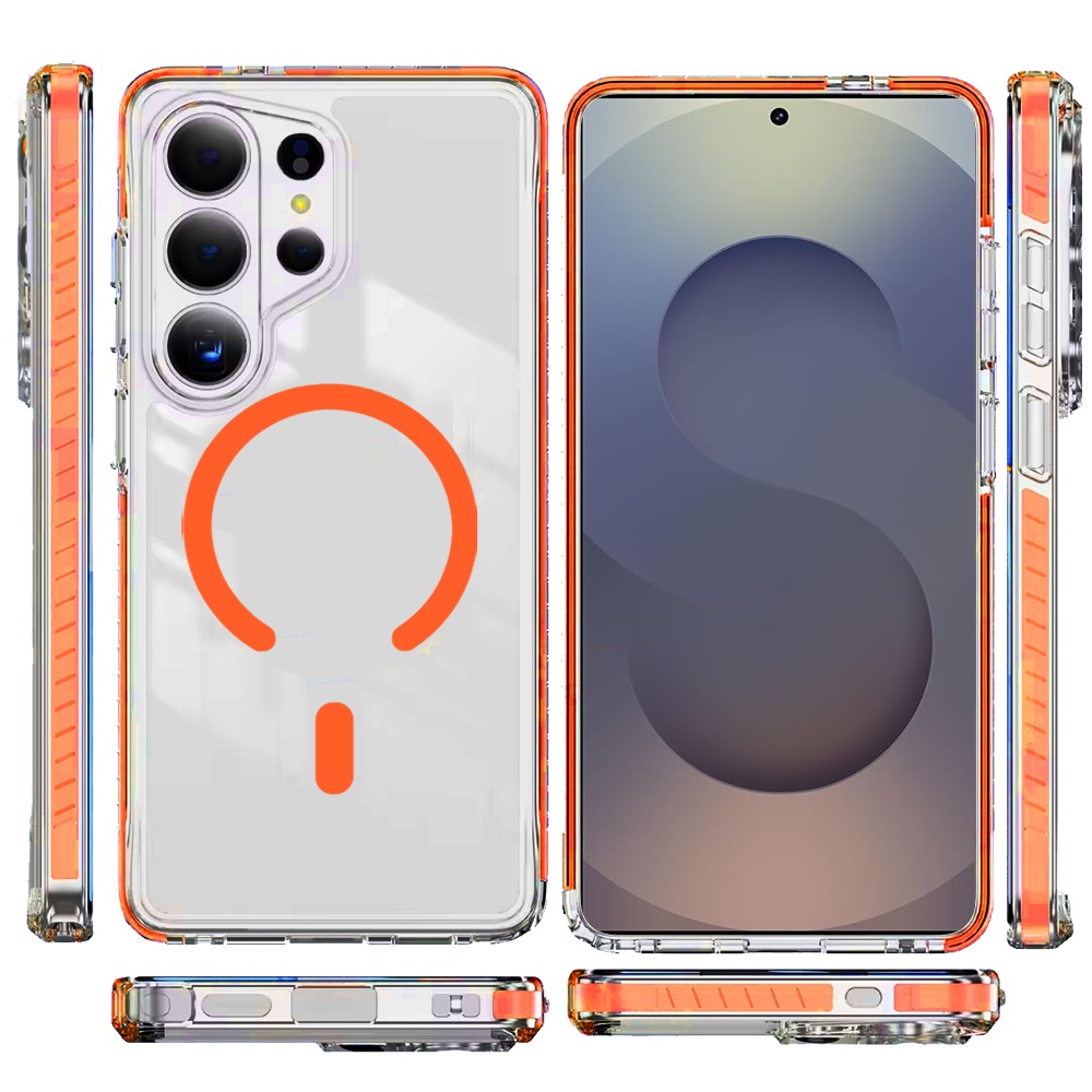 For Samsung s26 Ultra Thick Transparent Colored Edged Magnetic Hybrid Case - Cosmic Orange