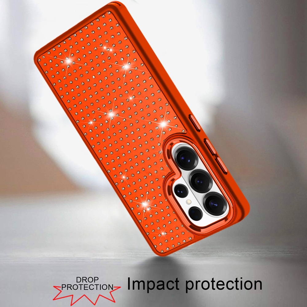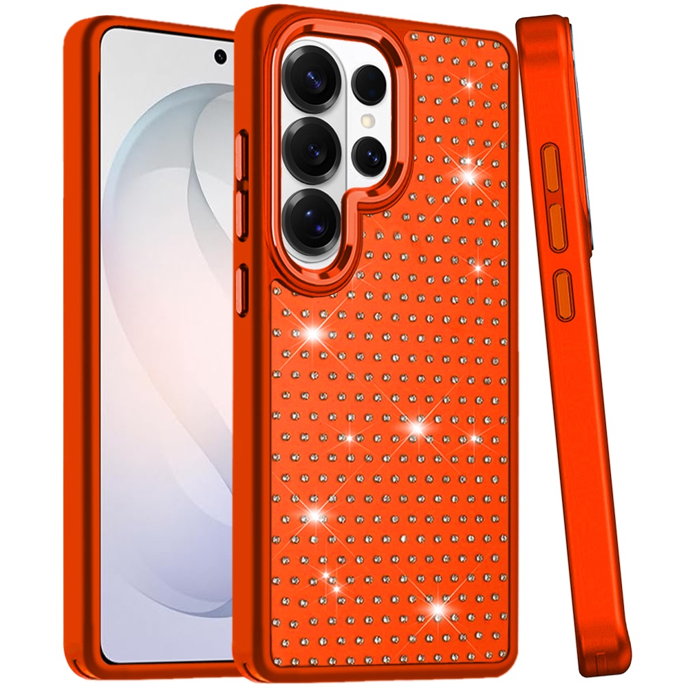For Samsung s26 Ultra Beautiful Diamond Metallic Design Metal Chrome Edged Hybrid - Cosmic Orange