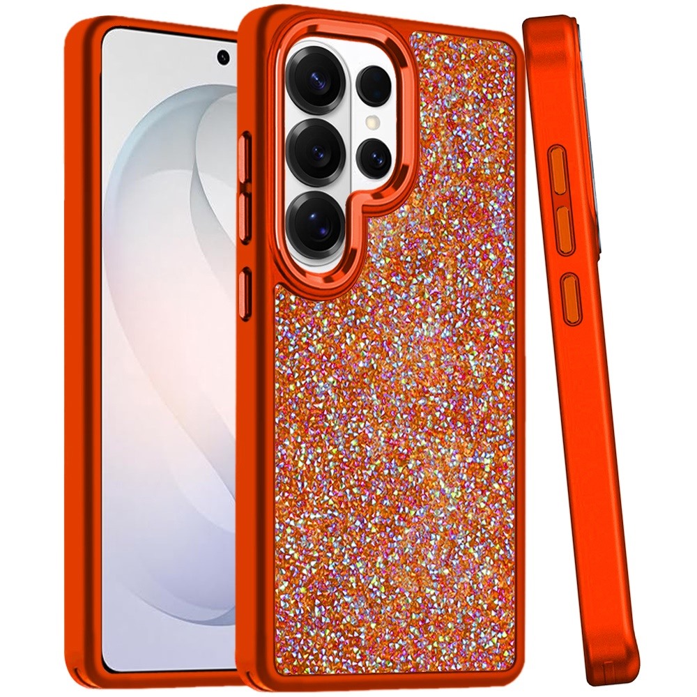 For Samsung s26 Ultra Crystal Glass Diamond with Metallic Buttons and Edges Hybrid Case - Cosmic Orange
