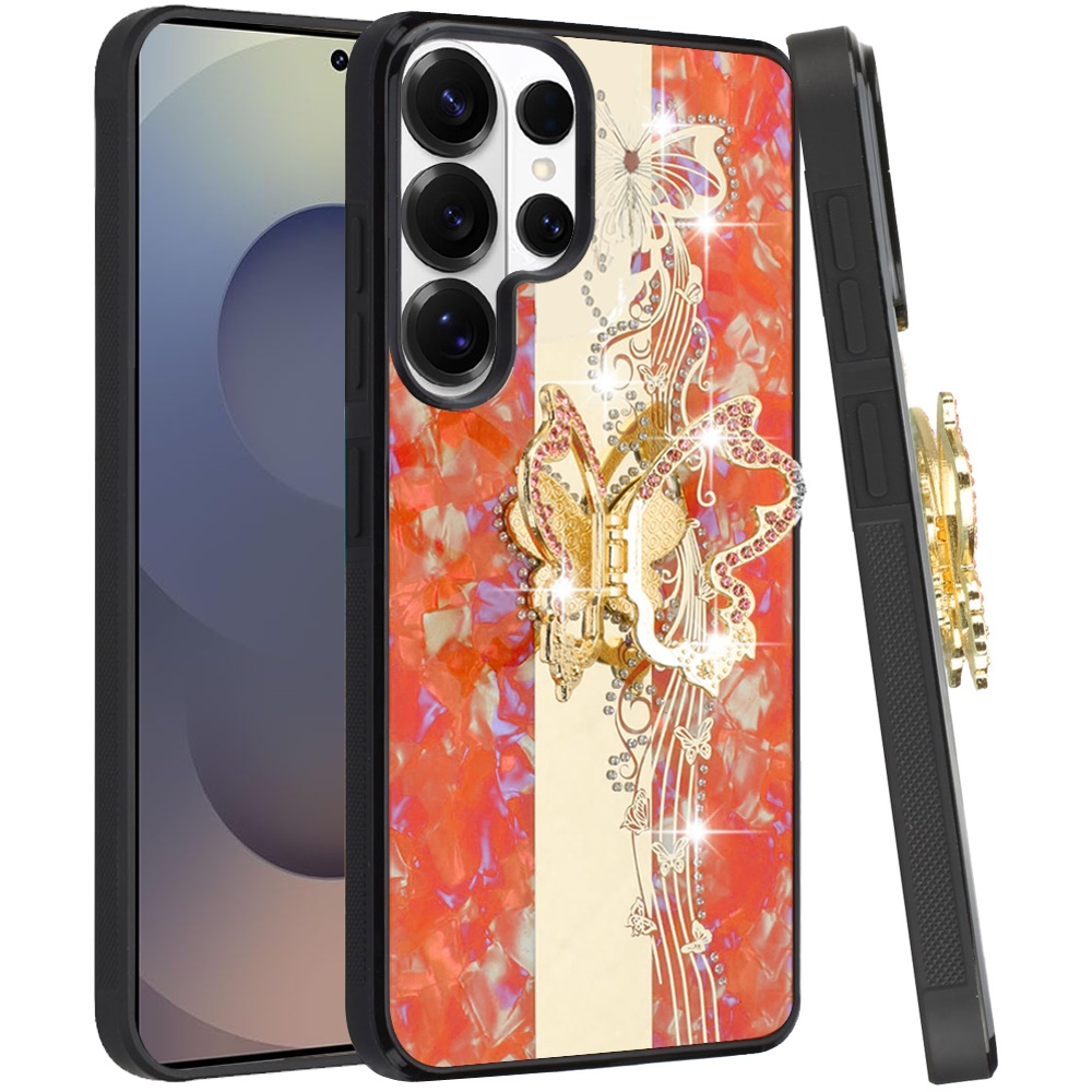 For Samsung s26 Ultra SPLENDID Diamond Glitter Ornaments Engraving Case Cover - Enchanted Butterfly Cosmic Orange