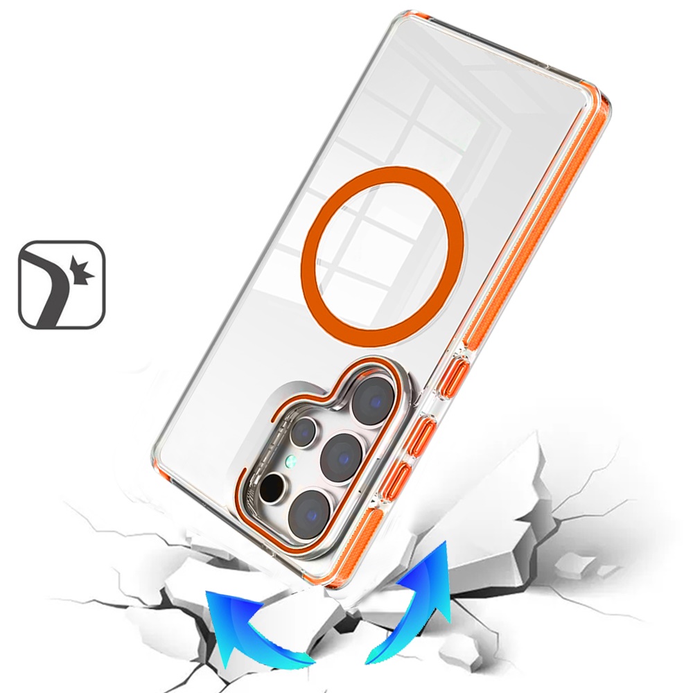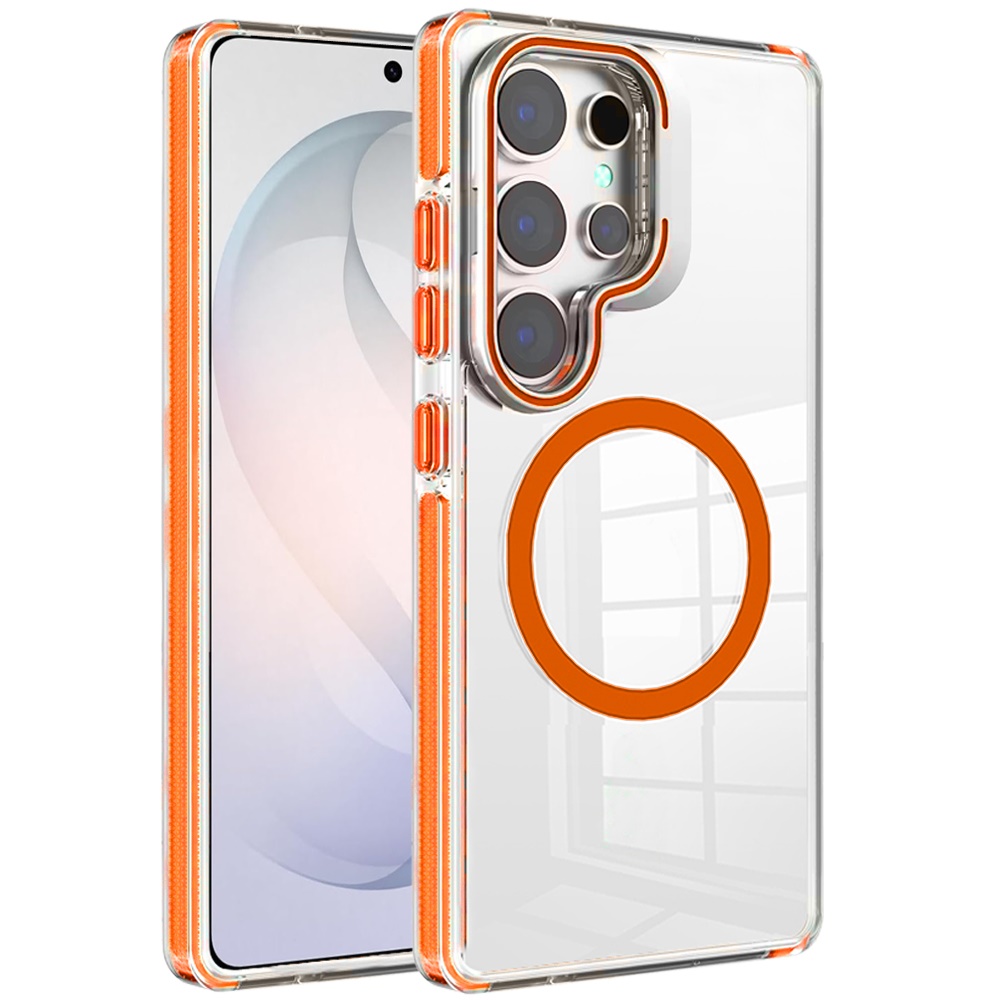 For Samsung s26 Ultra Camera Metallic Stand [Magnetic Circle] Transparent Colorful Matching Edged Tough Hybrid Case - Cosmic Orange