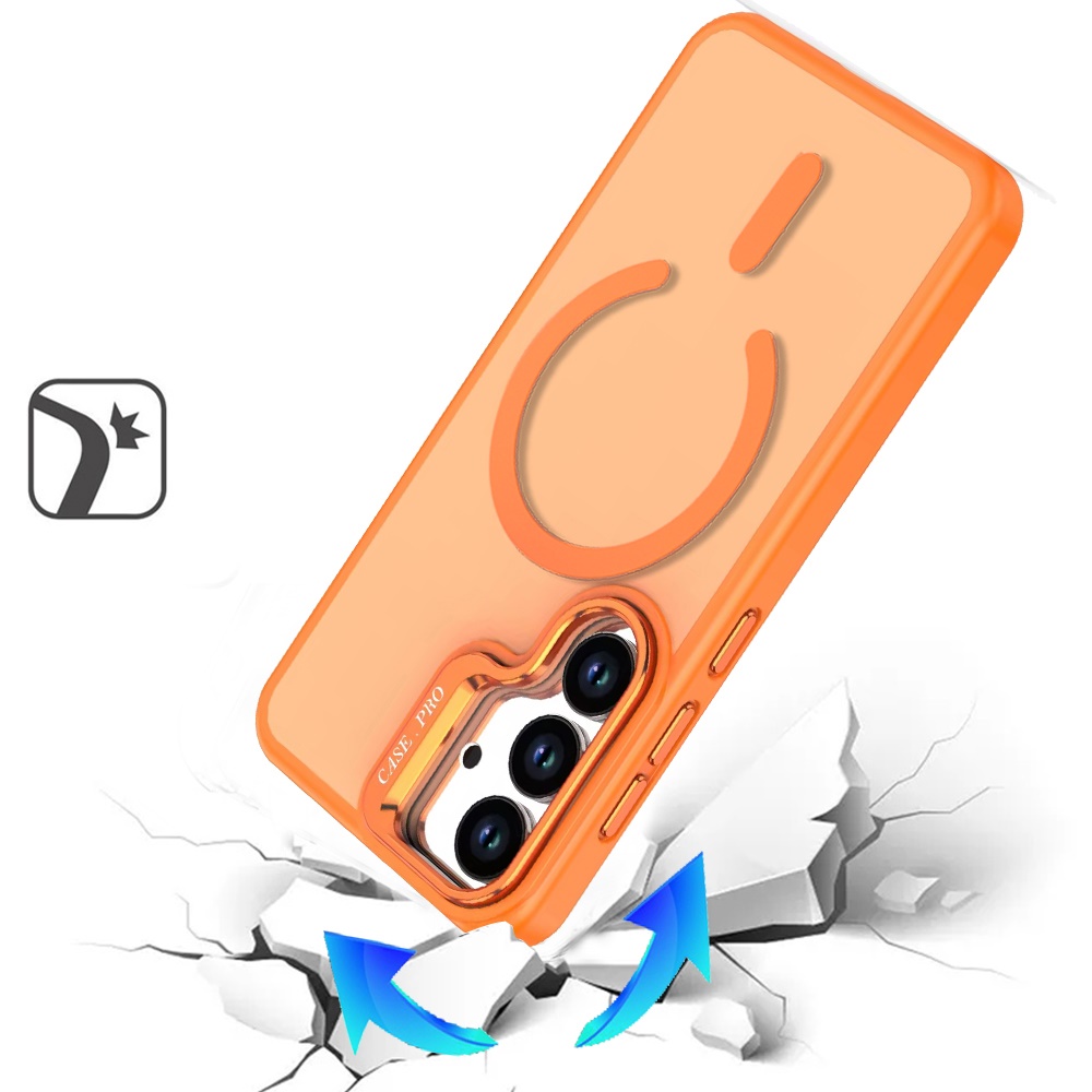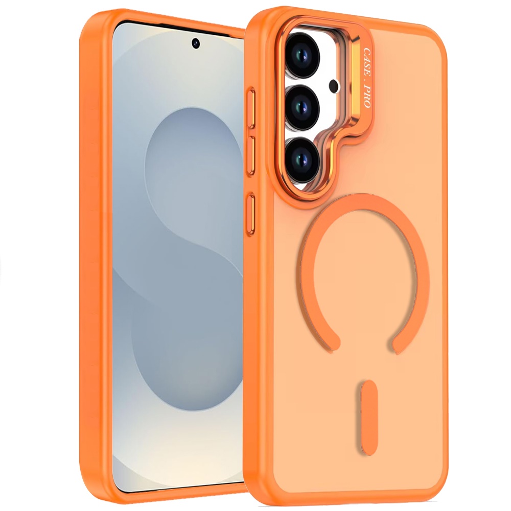 For Samsung s26 Magnetic Matte Camera Metallic Stand Hybrid Case - Cosmic Orange