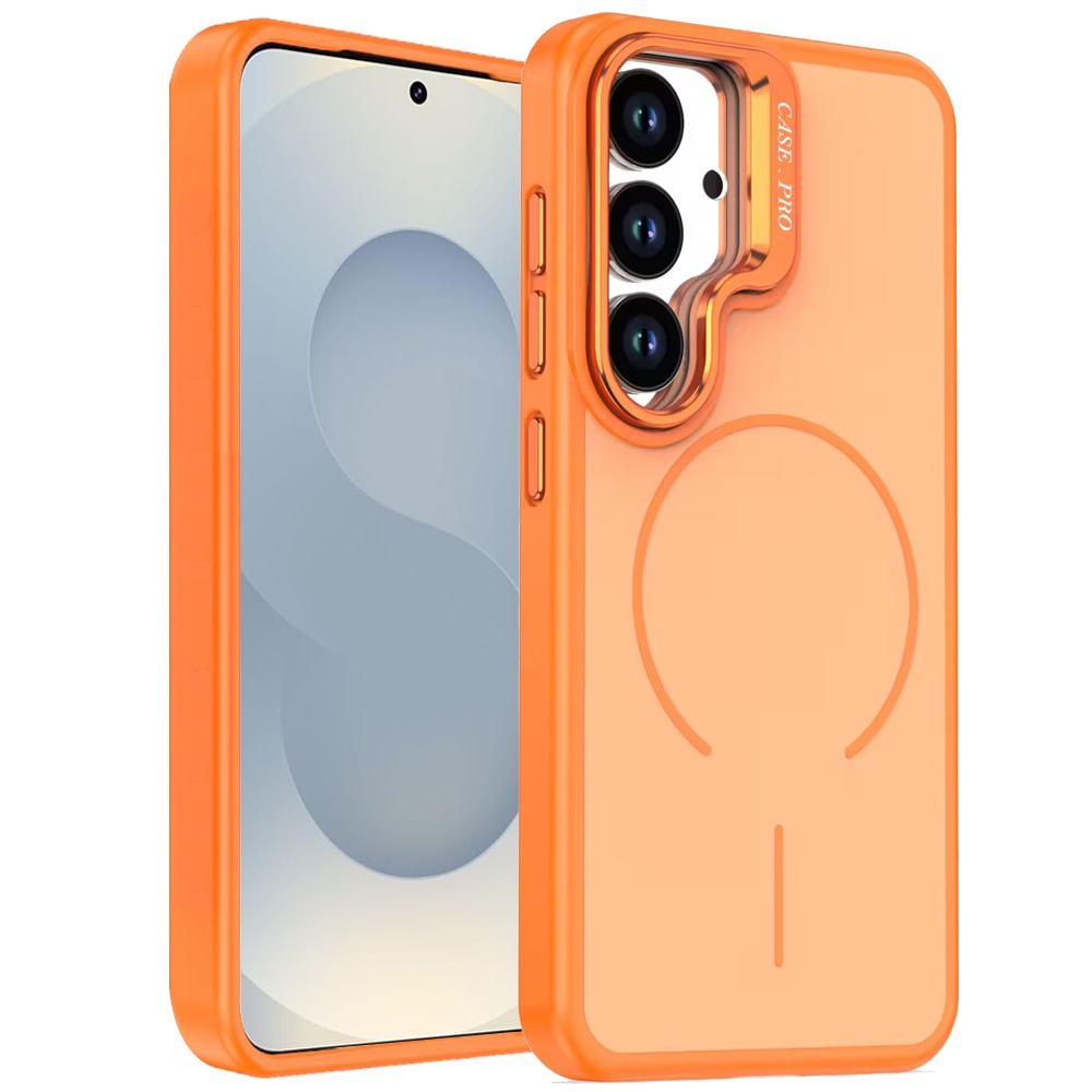 For Samsung s26 Premium Matte Magnetic Metal Camera Stand Hybrid Case - Cosmic Orange