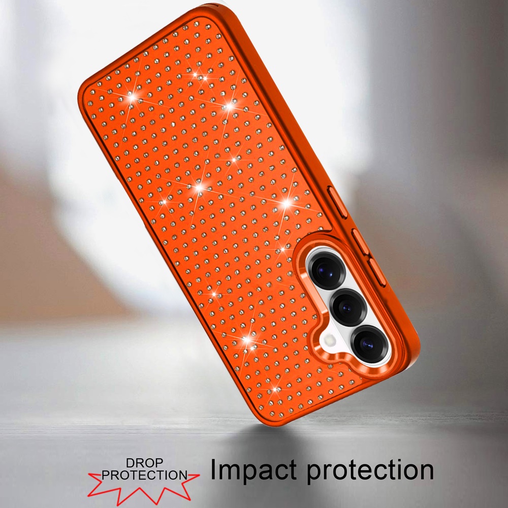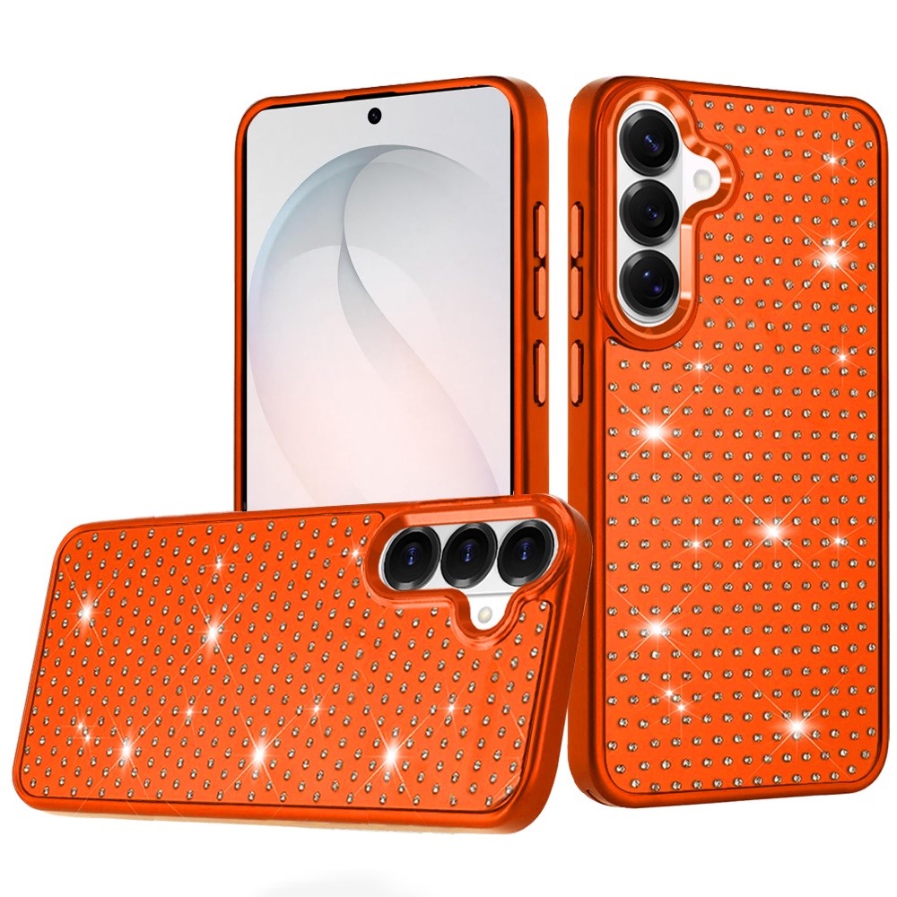 For Samsung s26 Beautiful Diamond Metallic Design Metal Chrome Edged Hybrid - Cosmic Orange