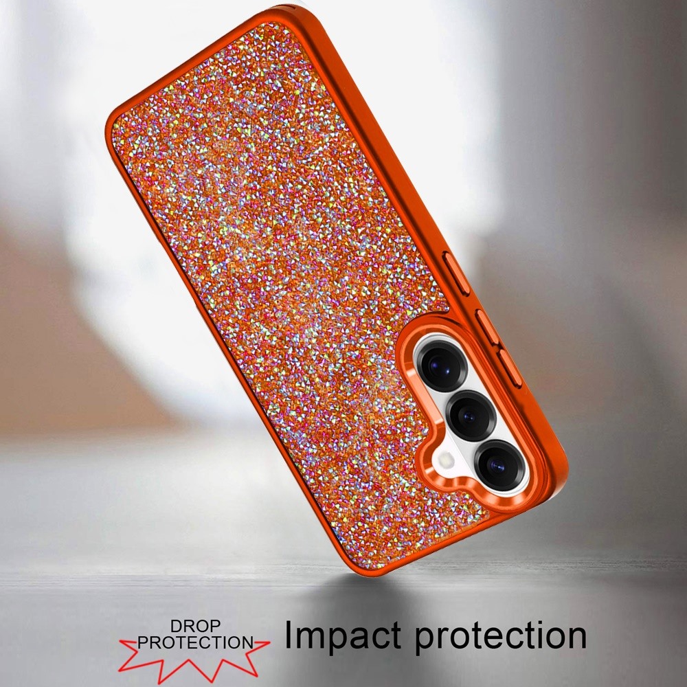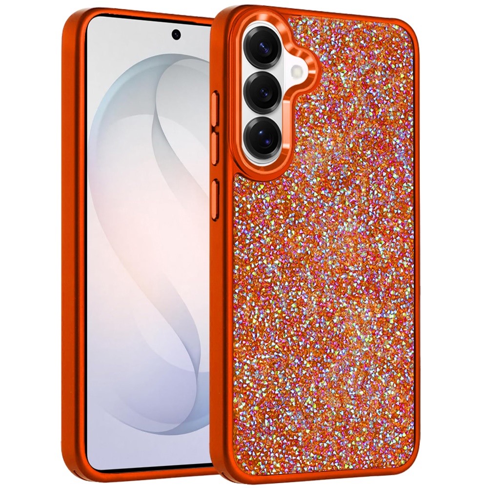 For Samsung s26 Crystal Glass Diamond with Metallic Buttons and Edges Hybrid Case - Cosmic Orange