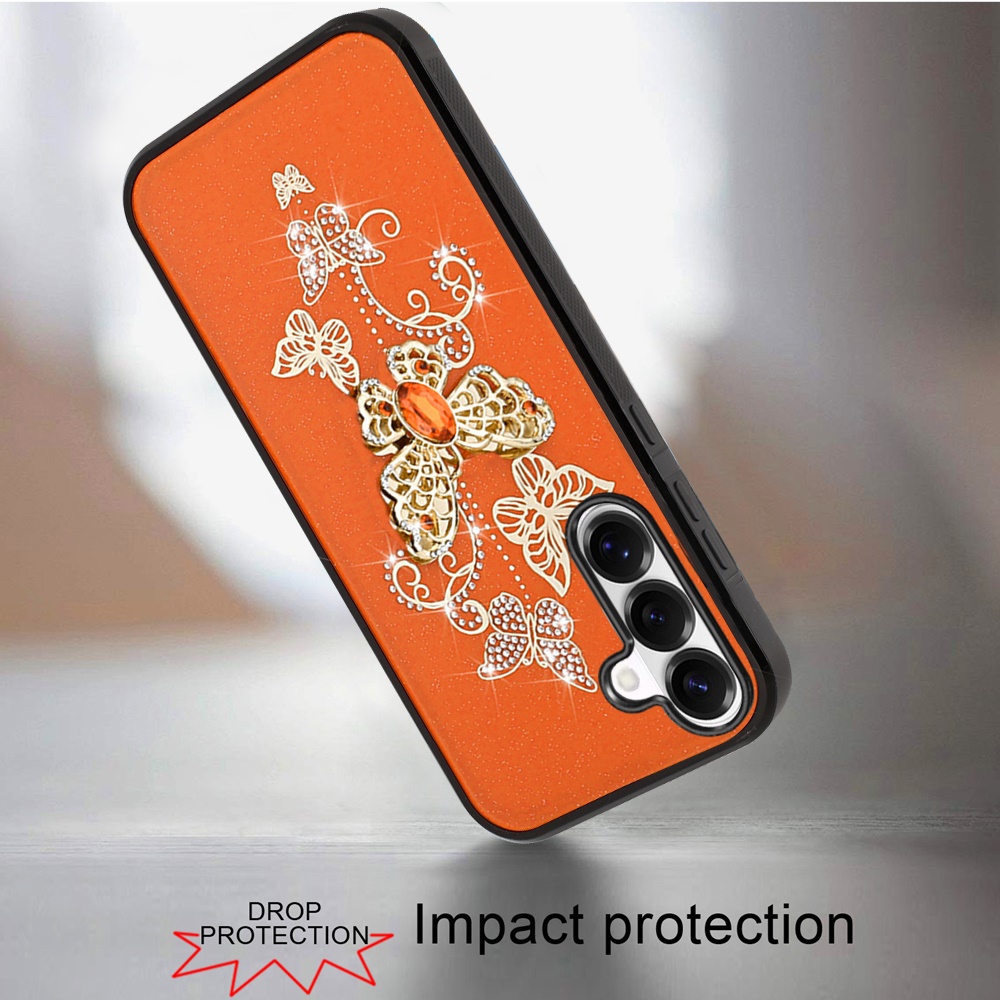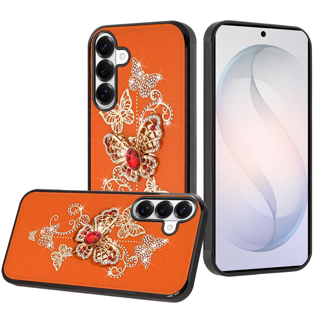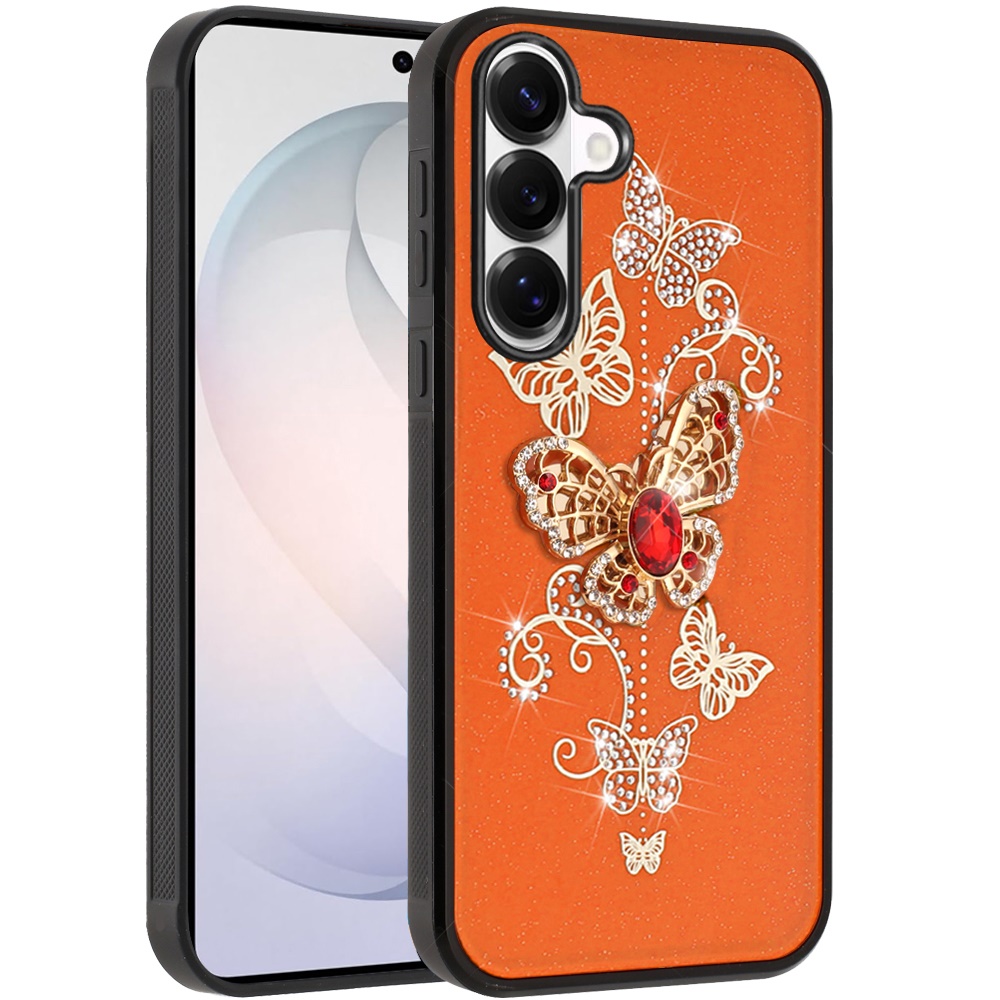 For Samsung s26 SPLENDID Diamond Glitter Ornaments Engraving Case Cover - Garden Butterflies Cosmic Orange