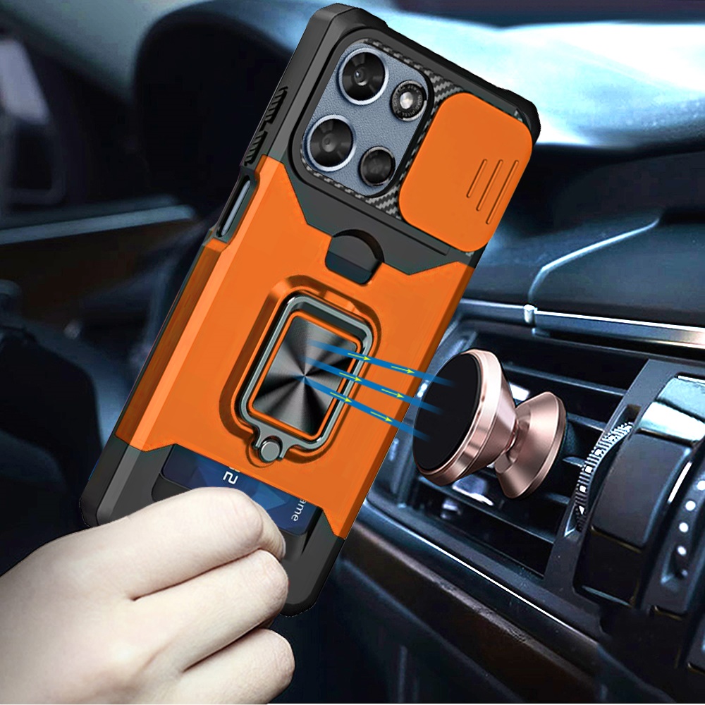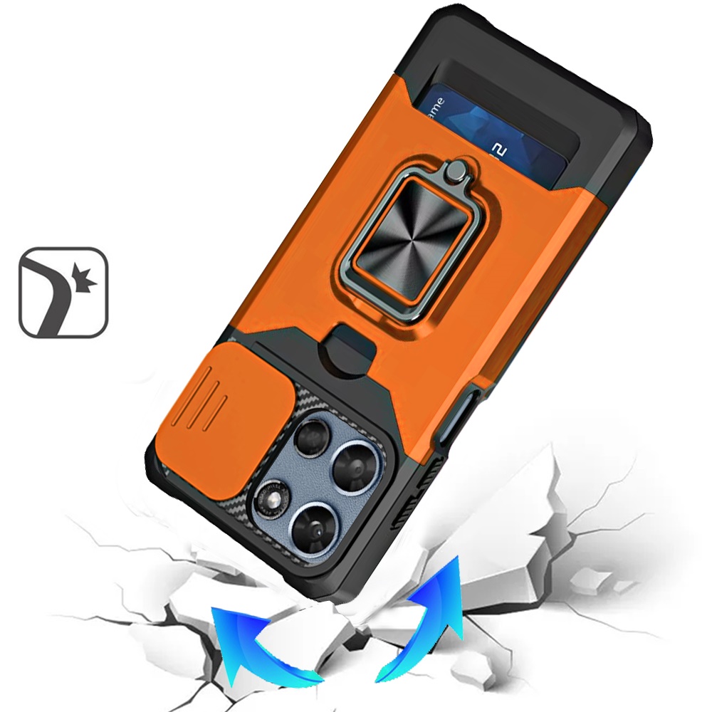 For Motorola Moto G 5G 2025 Multi-Functional Card Magnetic Ring Stand Hybrid Camera Case Cover - Cosmic Orange