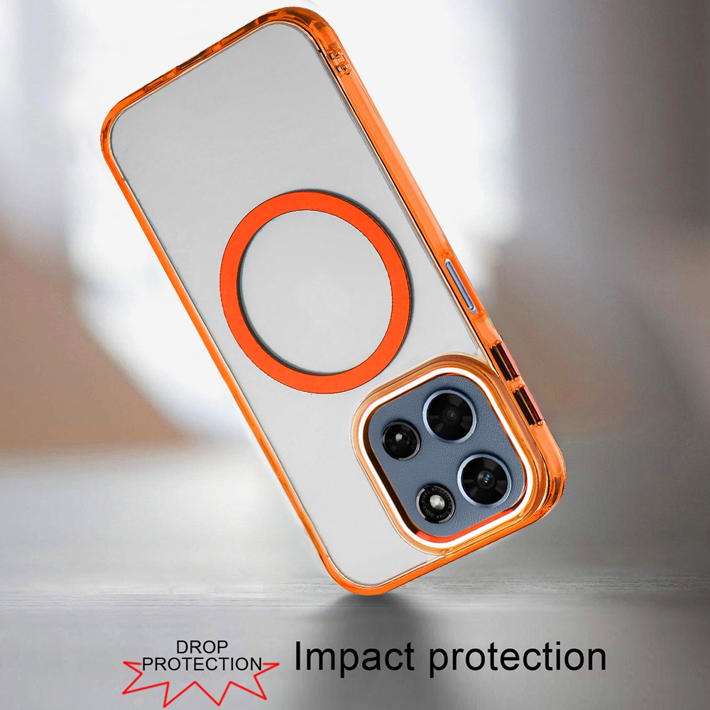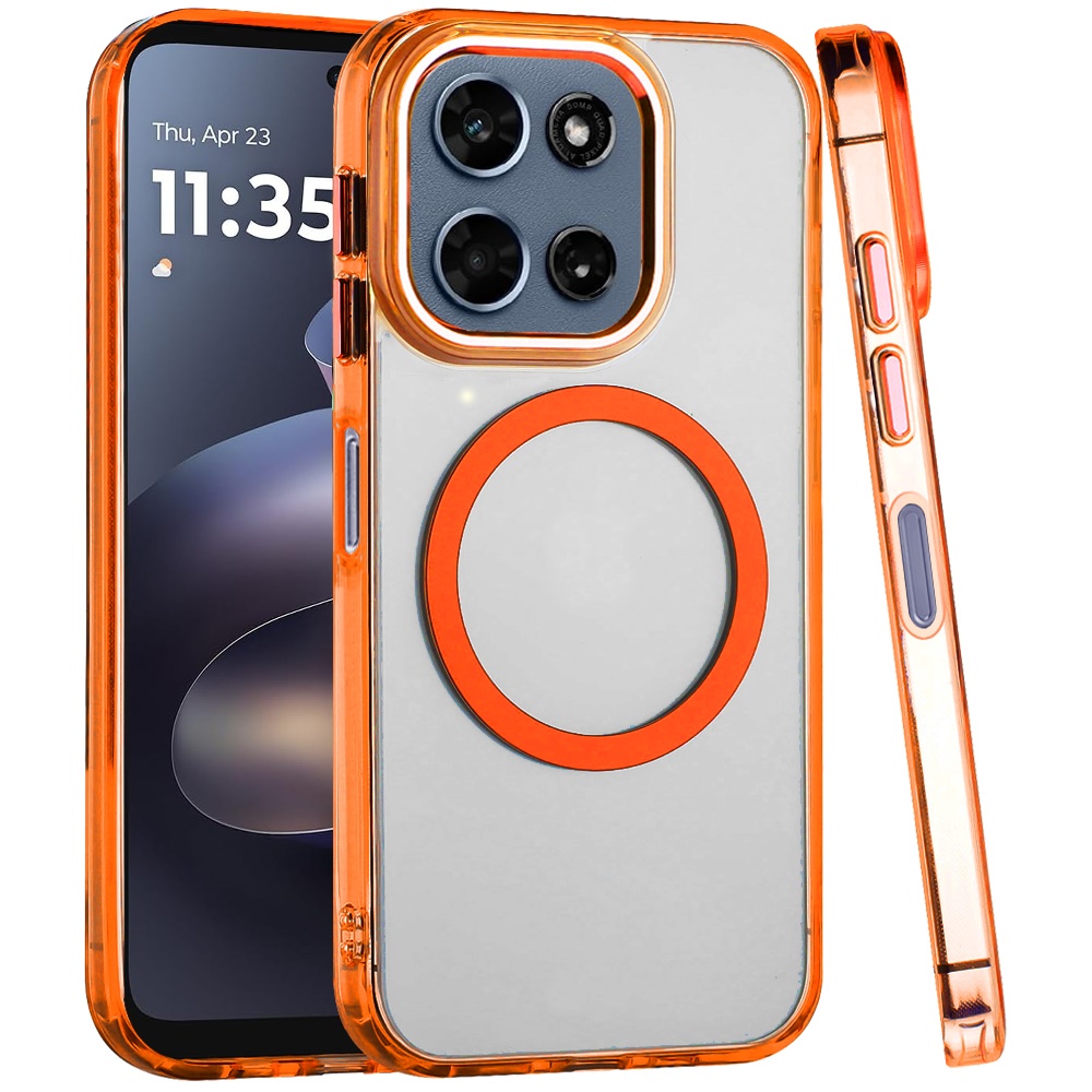 For Motorola Moto G 5G 2025 Magnetic Circle Ring Transparent Premium Acrylic with Metal Buttons & Camera Raised Lip - Cosmic Orange