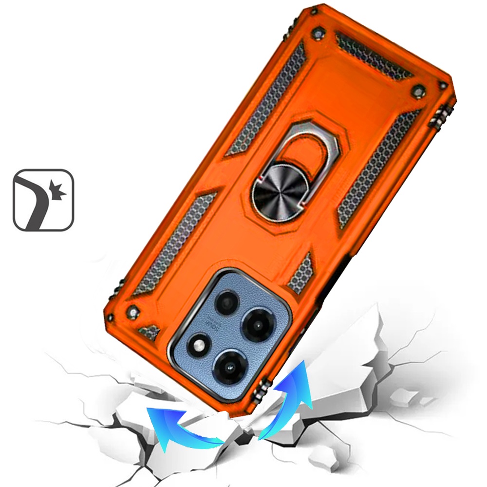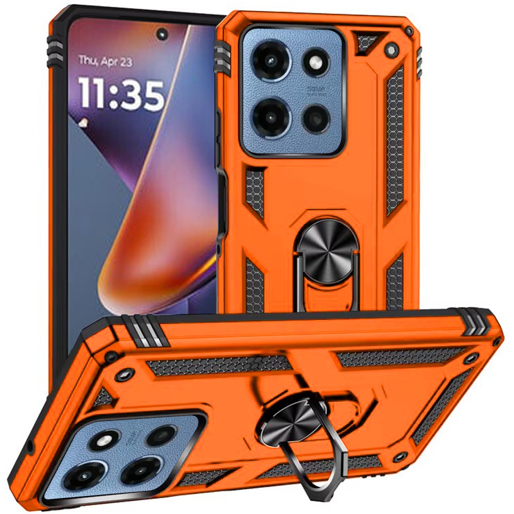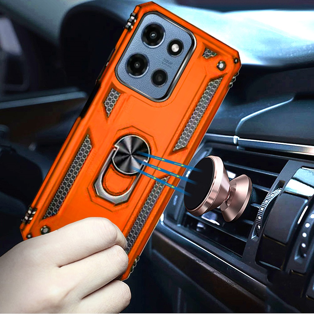 For Motorola Moto G 5G 2025 Ring Magnetic Kickstand Hybrid Case Cover - Cosmic Orange