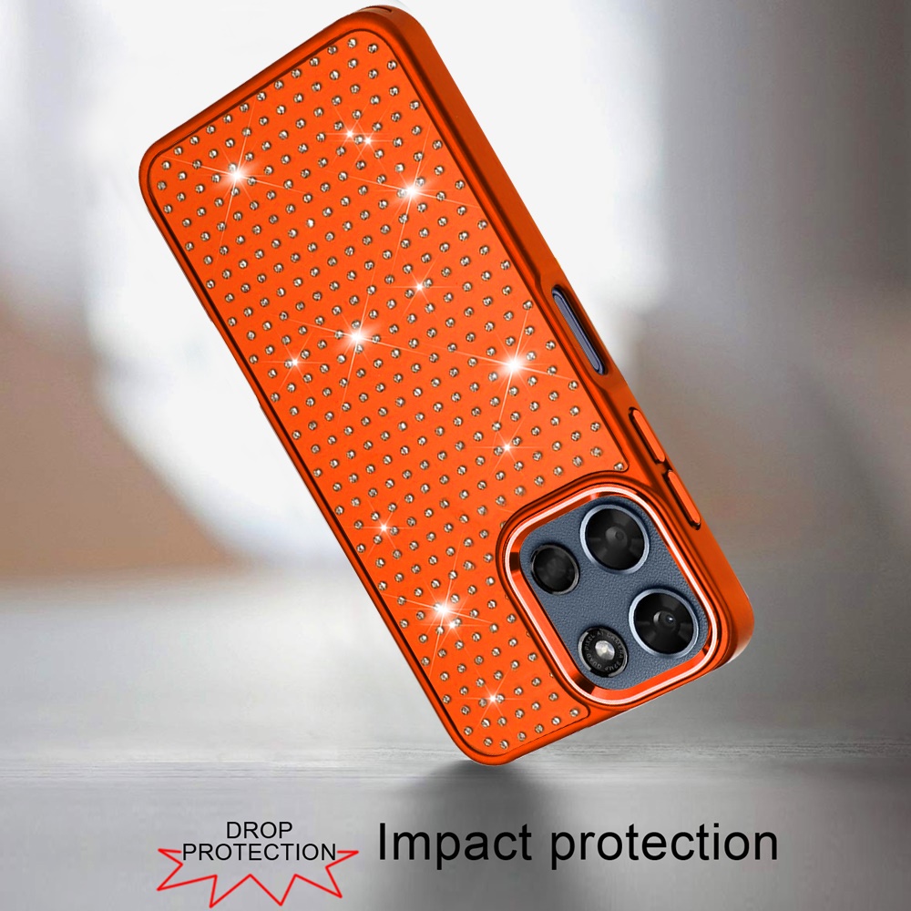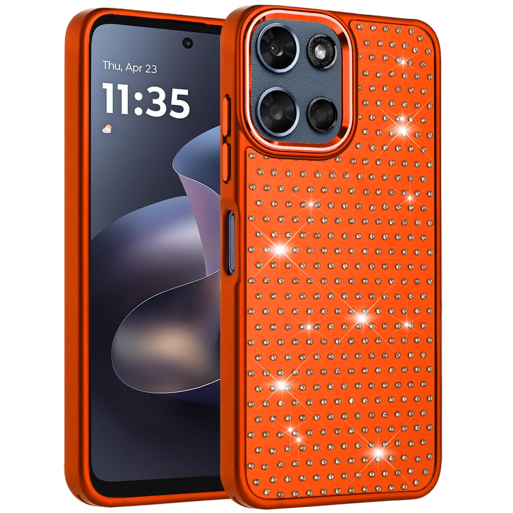 For Moto G 5G 2025/2026 / G PLAY 2026 Beautiful Diamond Metallic Design Metal Chrome Edged Hybrid - Cosmic Orange