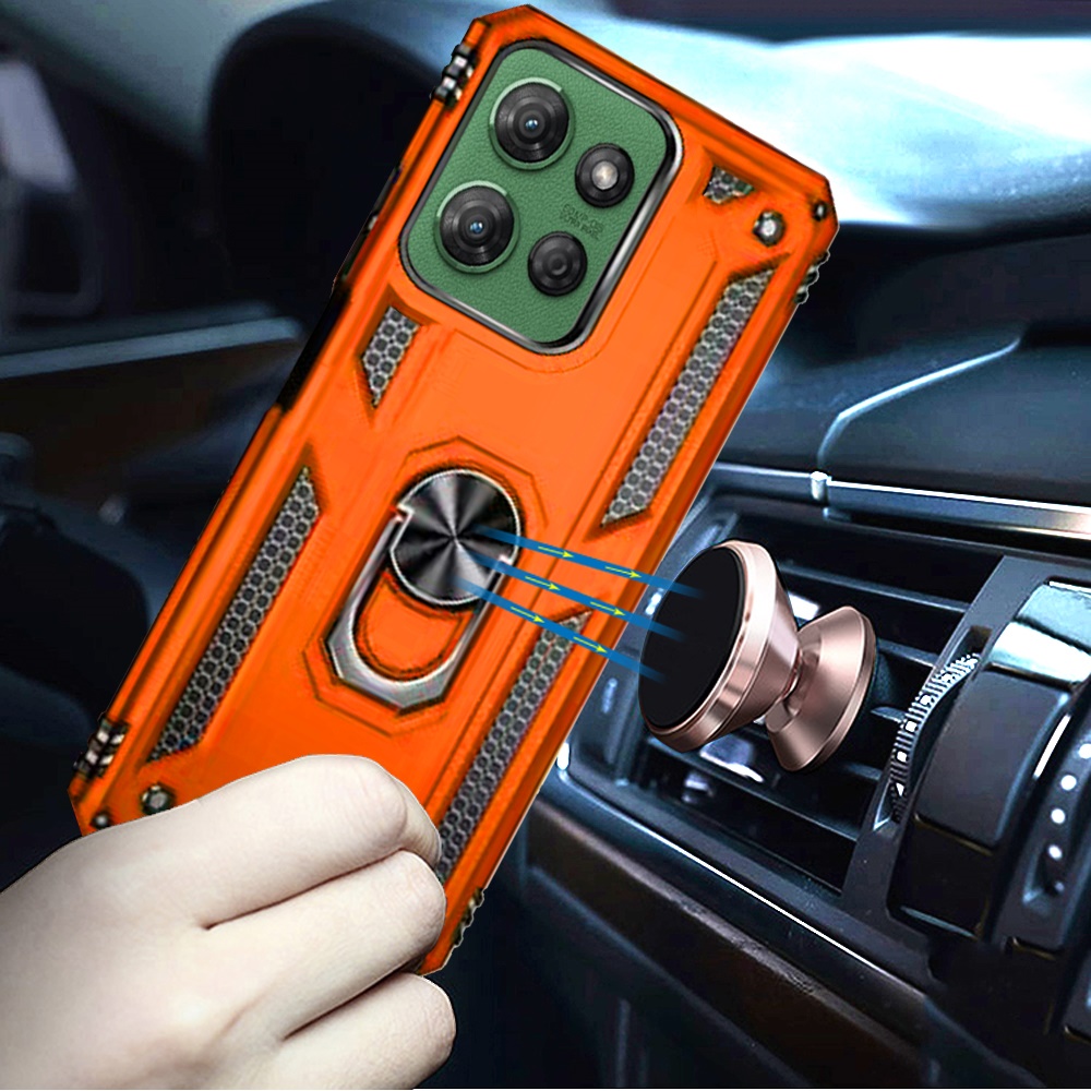 For Motorola Moto G Power 5G 2025 Ring Magnetic Kickstand Hybrid Case Cover - Cosmic Orange
