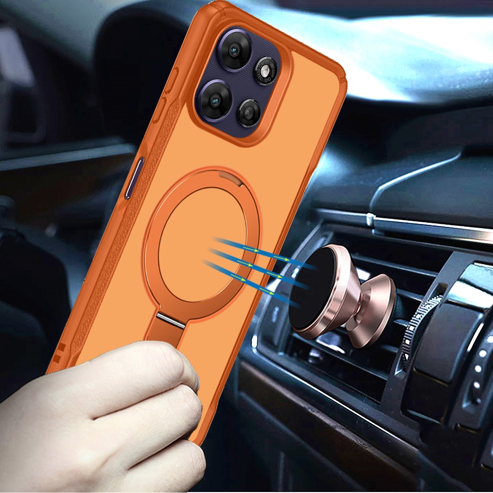 For Moto G Power 5G 2026/2025 Matte Finish Simplified Magnetic Ring With Stand Hybrid Case - Cosmic Orange
