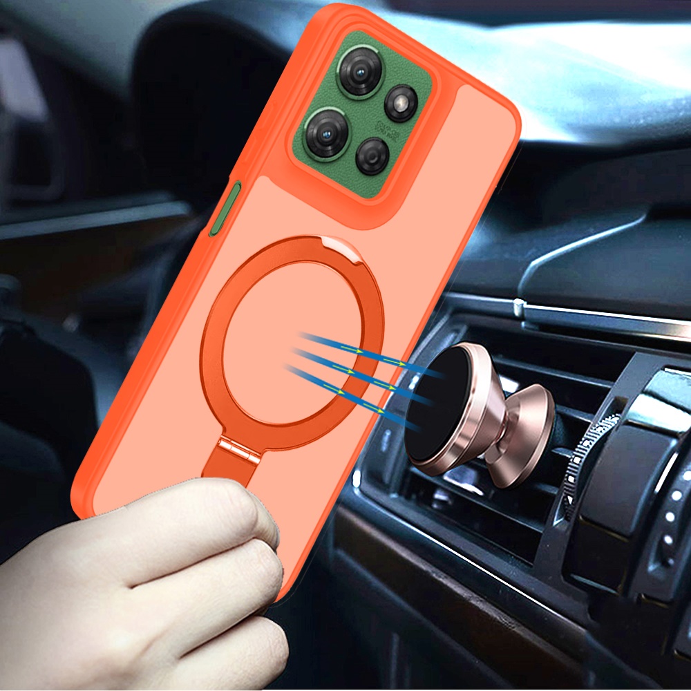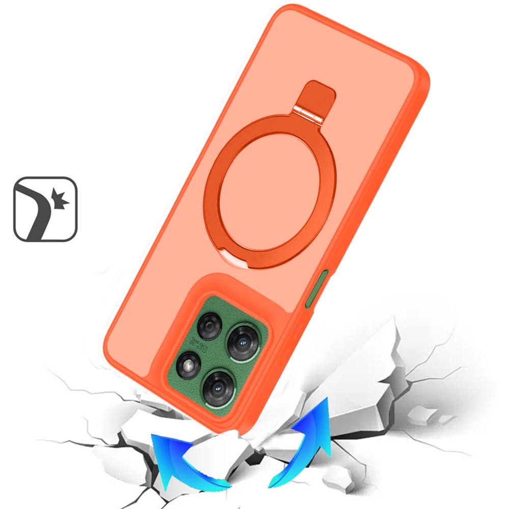 For Motorola Moto G Power 5G 2025 Magnetic Matching Ring Stand Full Rotation Matte Hybrid - Cosmic Orange