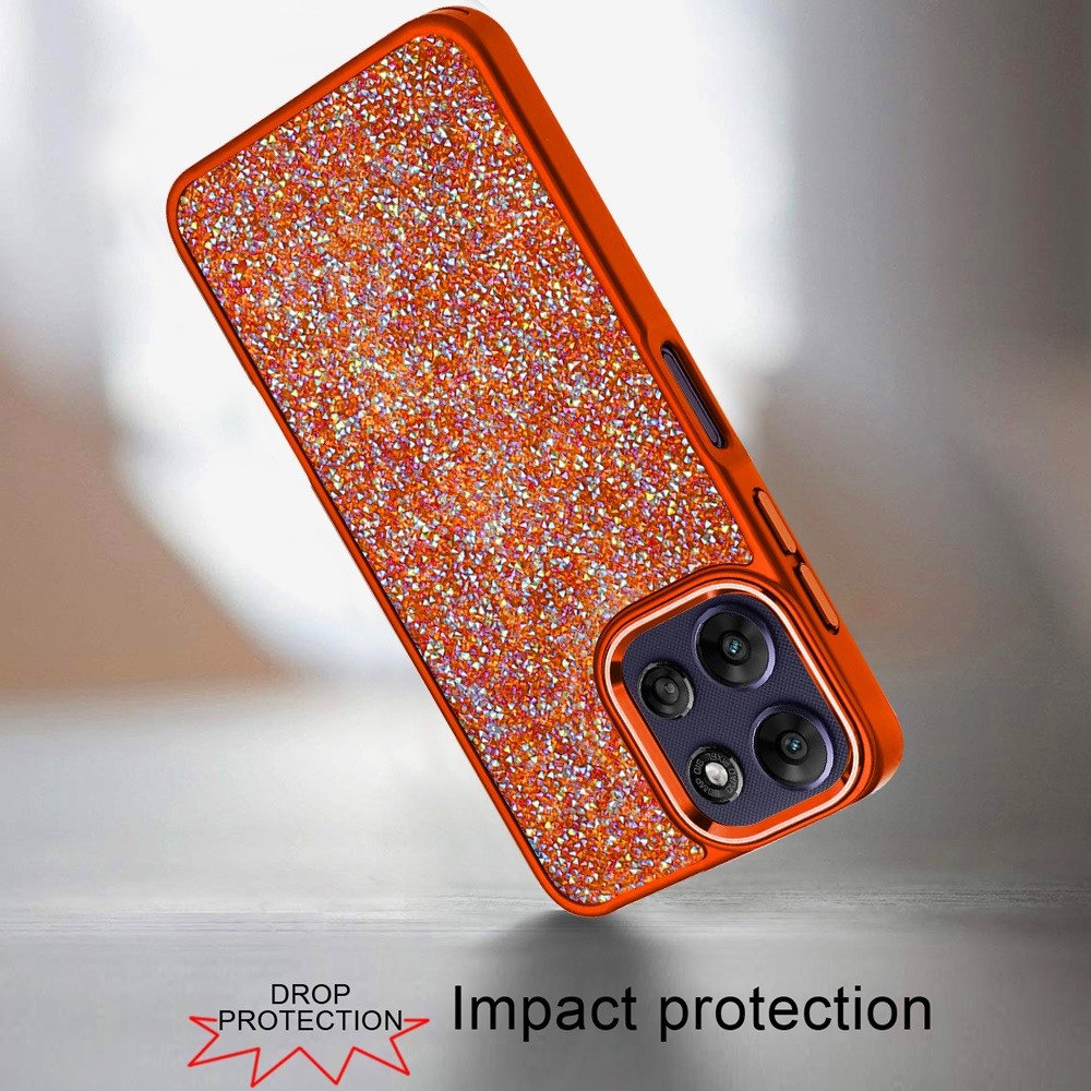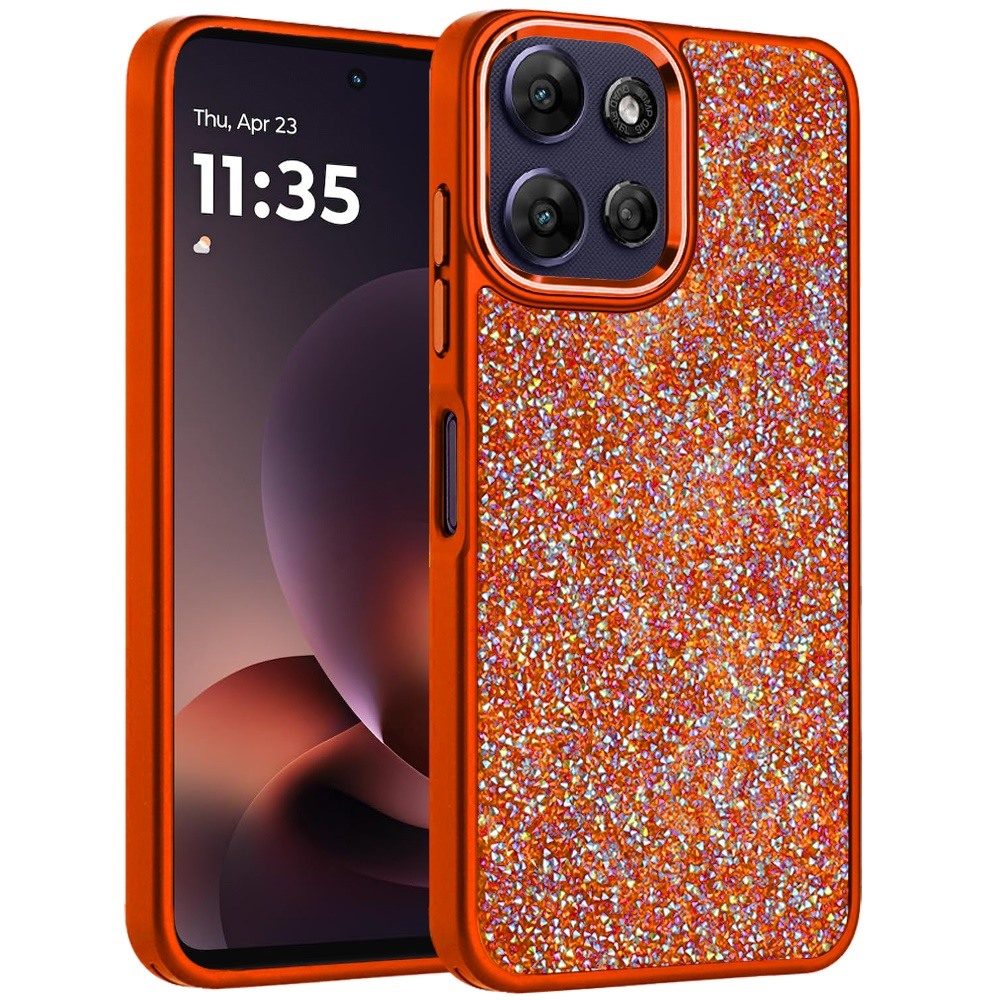 For Moto G Power 5G 2026/2025 Crystal Glass Diamond with Metallic Buttons and Edges Hybrid Case - Cosmic Orange