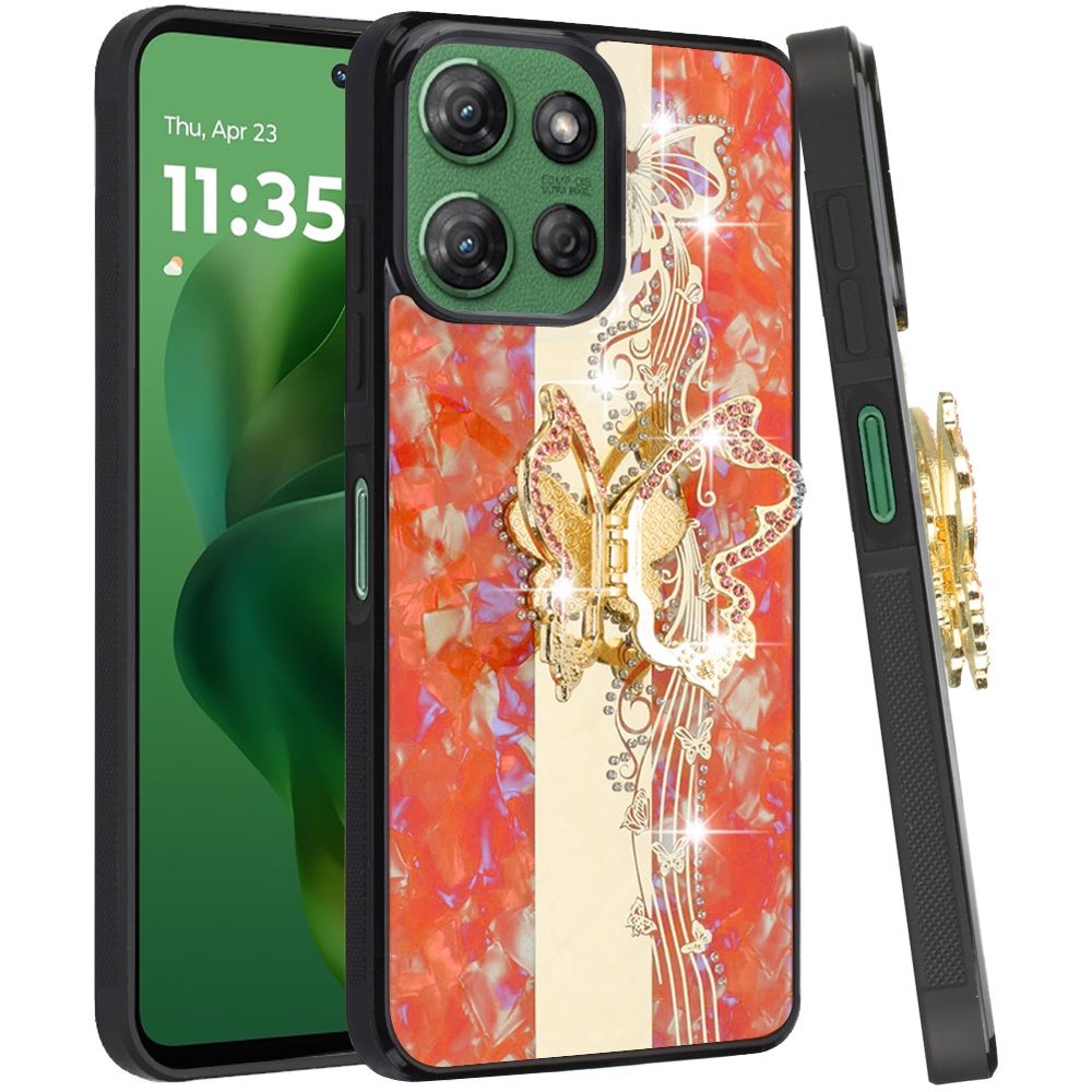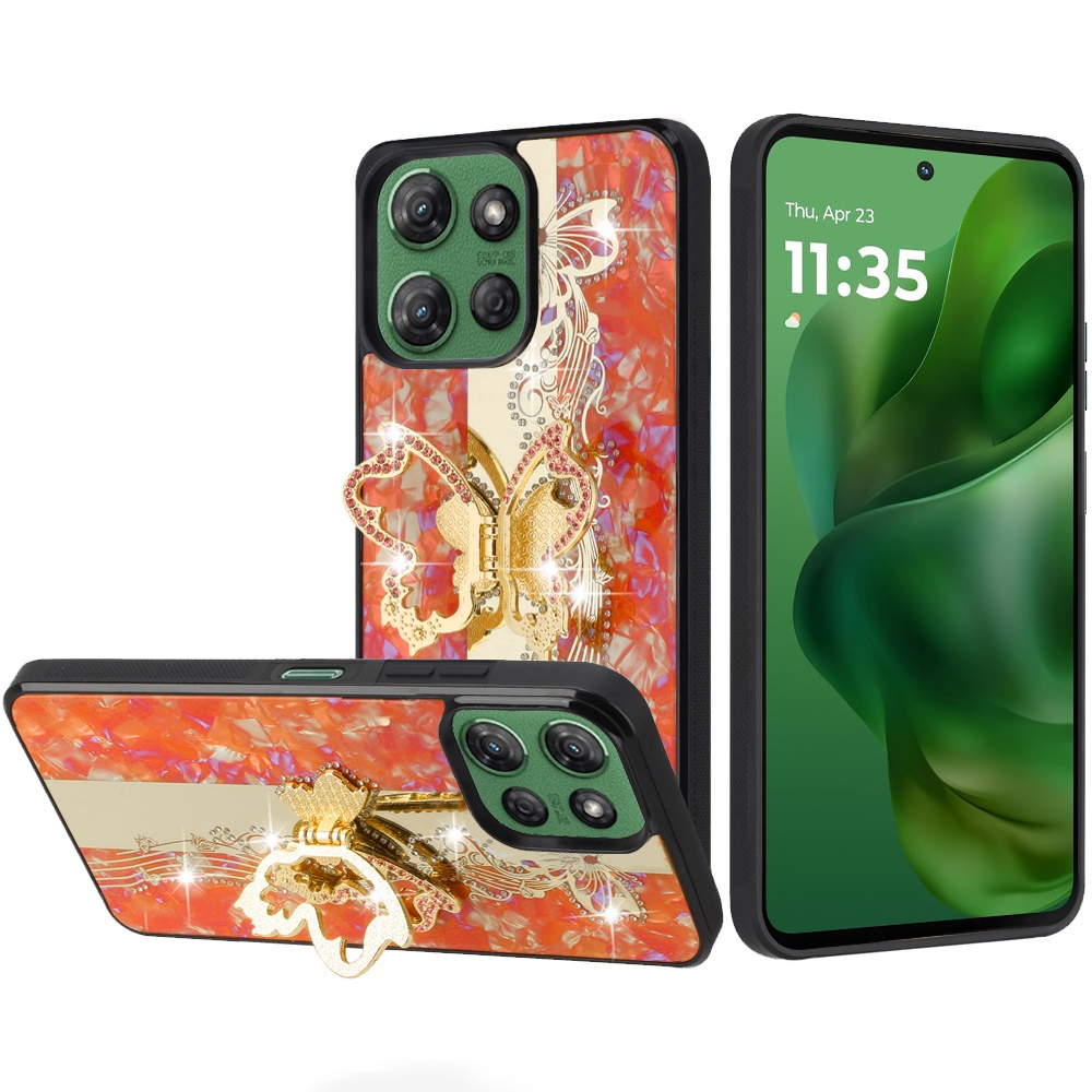 For Motorola Moto G Power 5G 2025 SPLENDID Diamond Glitter Ornaments Engraving Case Cover - Enchanted Butterfly Cosmic Orange