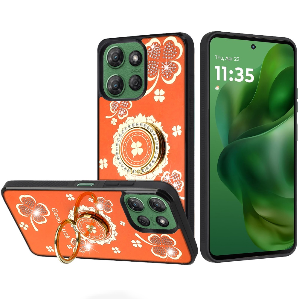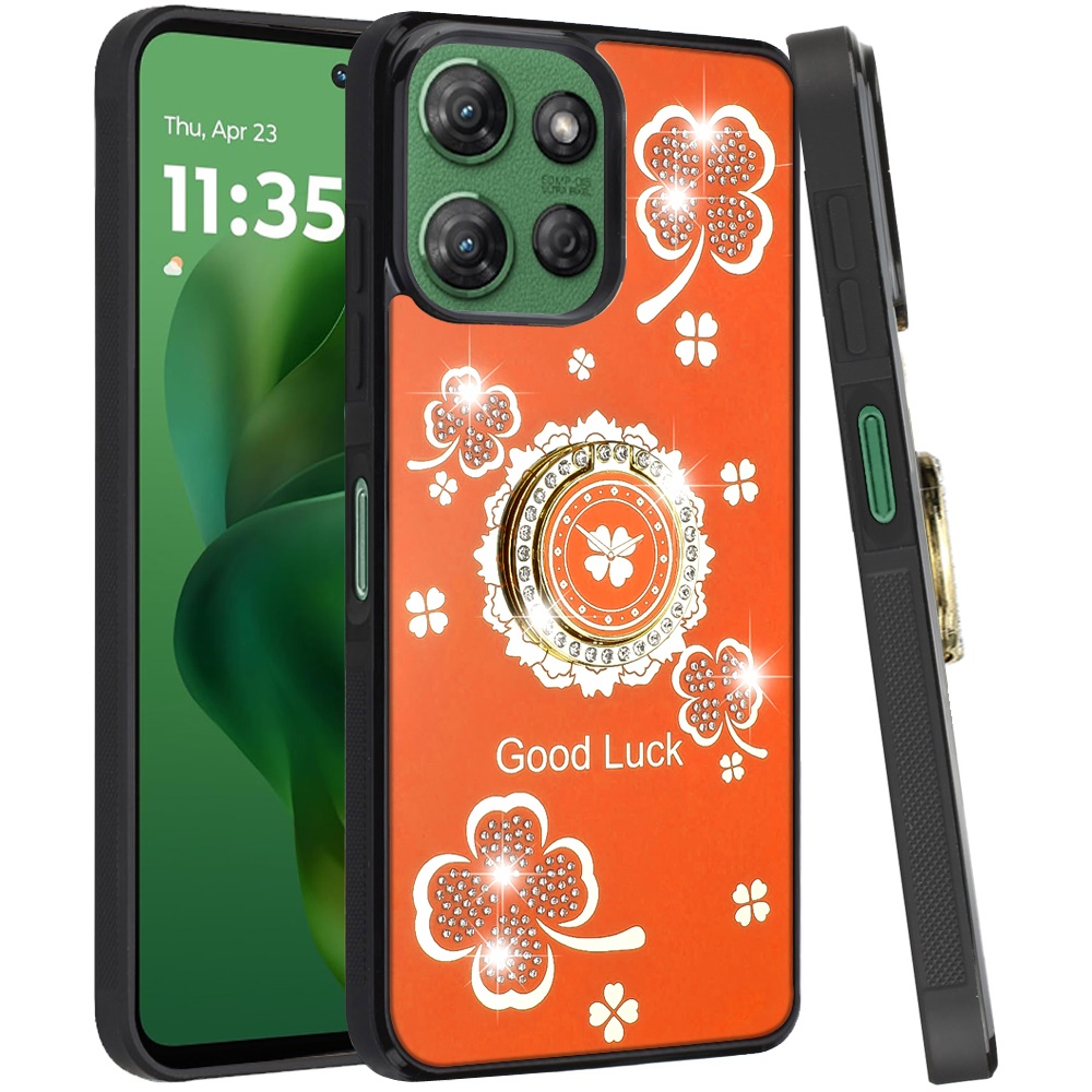 For Motorola Moto G Power 5G 2025 SPLENDID Diamond Glitter Ornaments Engraving Case Cover - Good Luck Floral Cosmic Orange