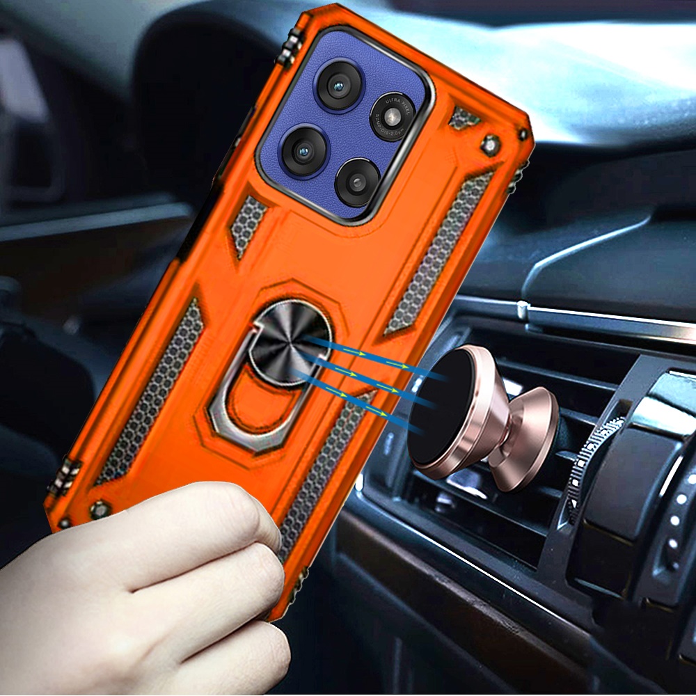 For Moto G Stylus 5G 2025 Ring Magnetic Kickstand Hybrid Case Cover - Cosmic Orange