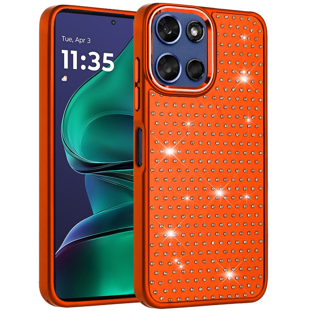 For Moto G Stylus 5G 2026/2025 Beautiful Diamond Metallic Design Metal Chrome Edged Hybrid - Cosmic Orange