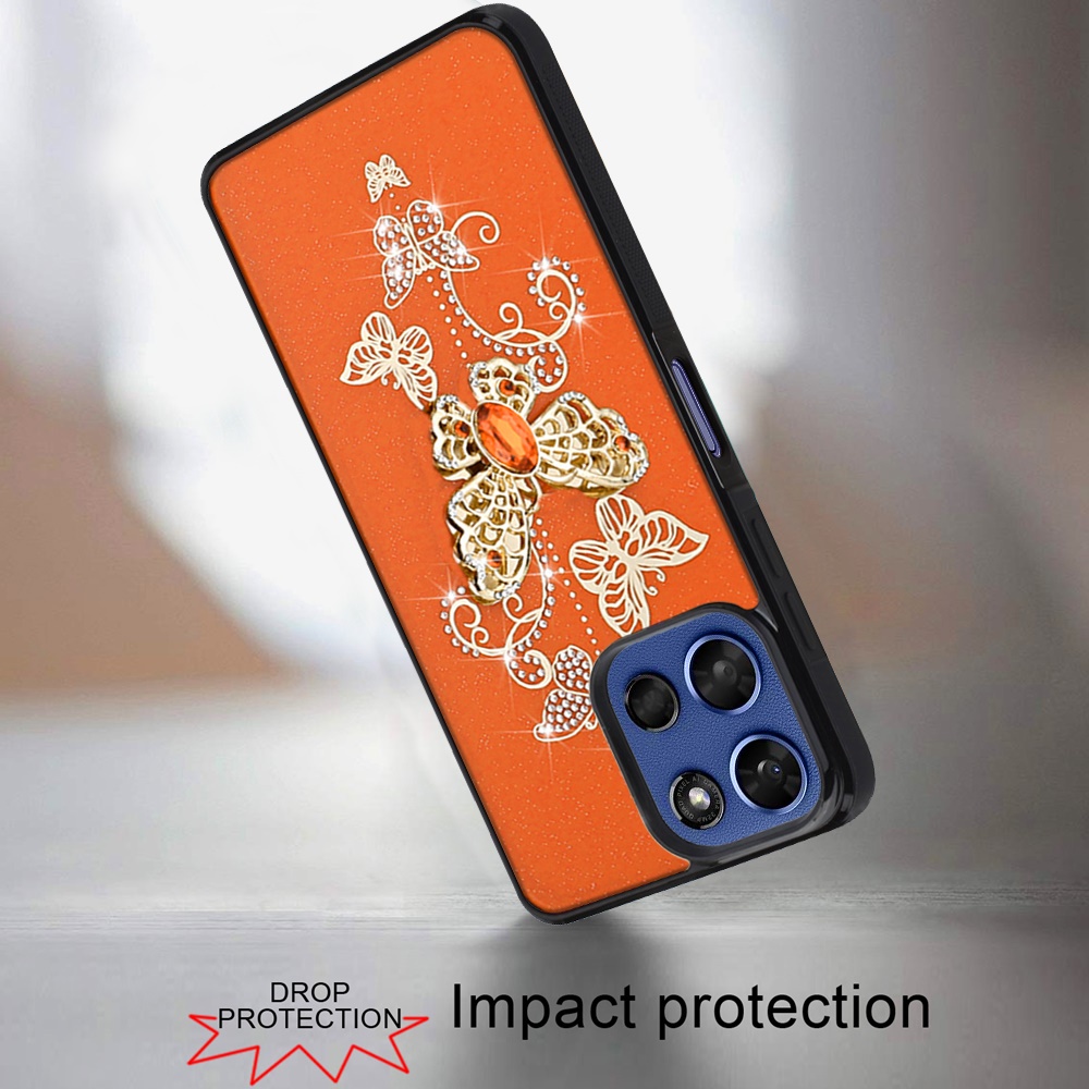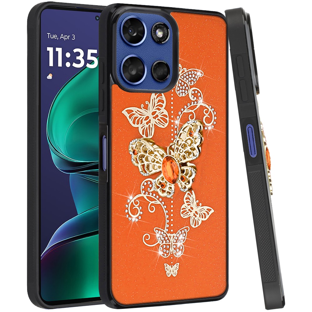 For Moto G Stylus 5G 2025 SPLENDID Diamond Glitter Ornaments Engraving Case Cover - Garden Butterflies Cosmic Orange