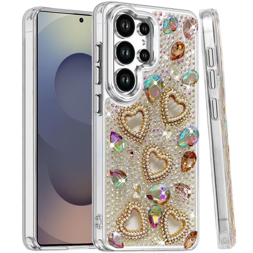 For Samsung s25 Ultra Luxury Crystal Heart Rhinestones Diamond Bling Hybrid Case - Multicolor