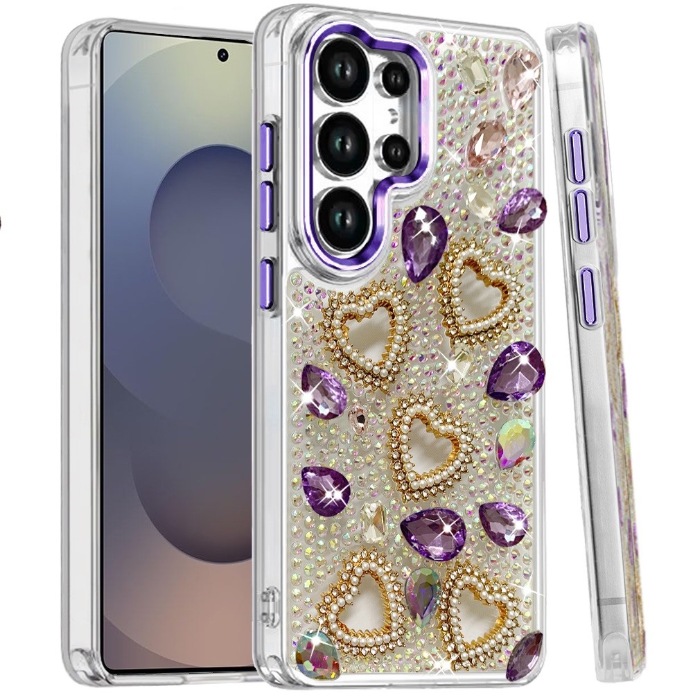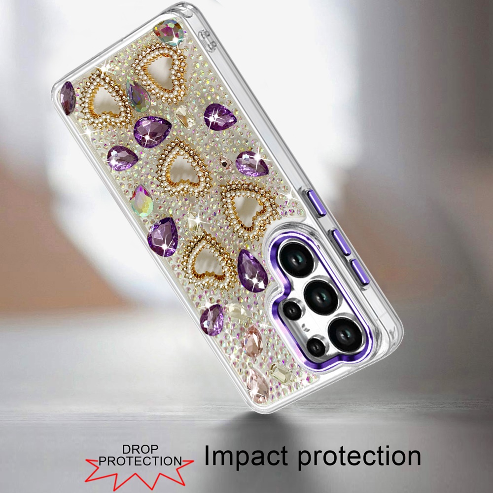 For Samsung s25 Ultra Luxury Crystal Heart Rhinestones Diamond Bling Hybrid Case - Dark Purple