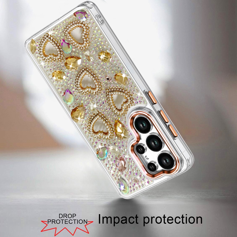 For Samsung s26 Ultra Luxury Crystal Heart Rhinestones Diamond Bling Hybrid Case - Gold