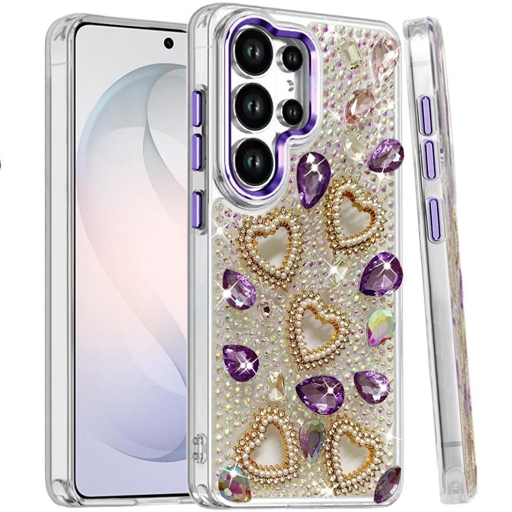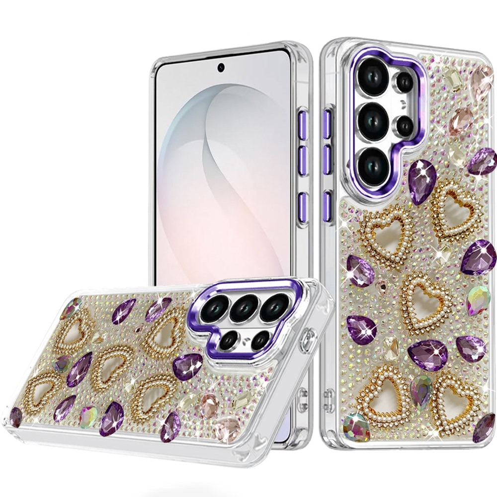 For Samsung s26 Ultra Luxury Crystal Heart Rhinestones Diamond Bling Hybrid Case - Dark Purple