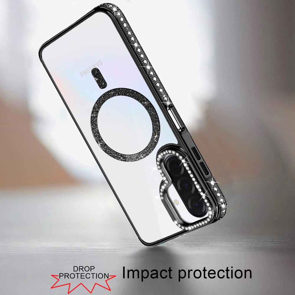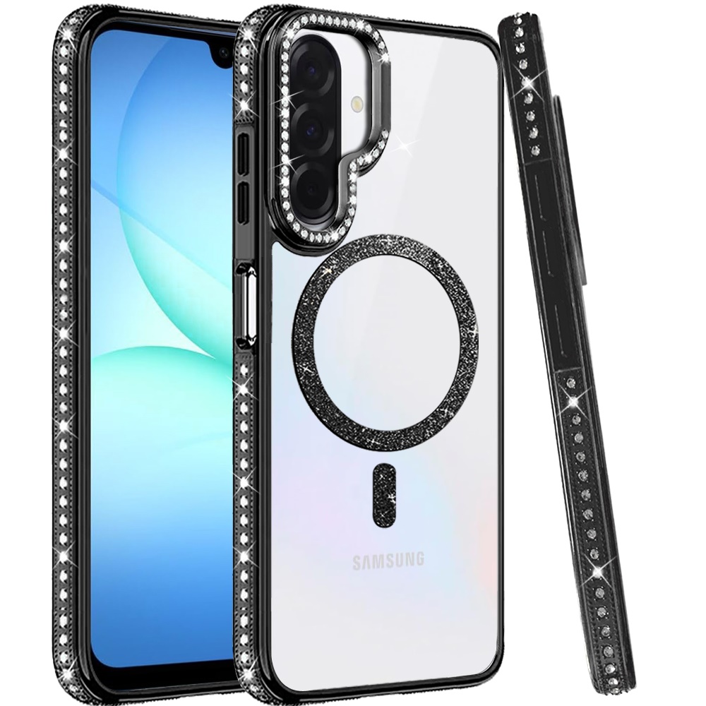 For Samsung A17 5G Luxury Diamond Edged Magnetic Glitter Circle Hybrid with Camera Stand - Black
