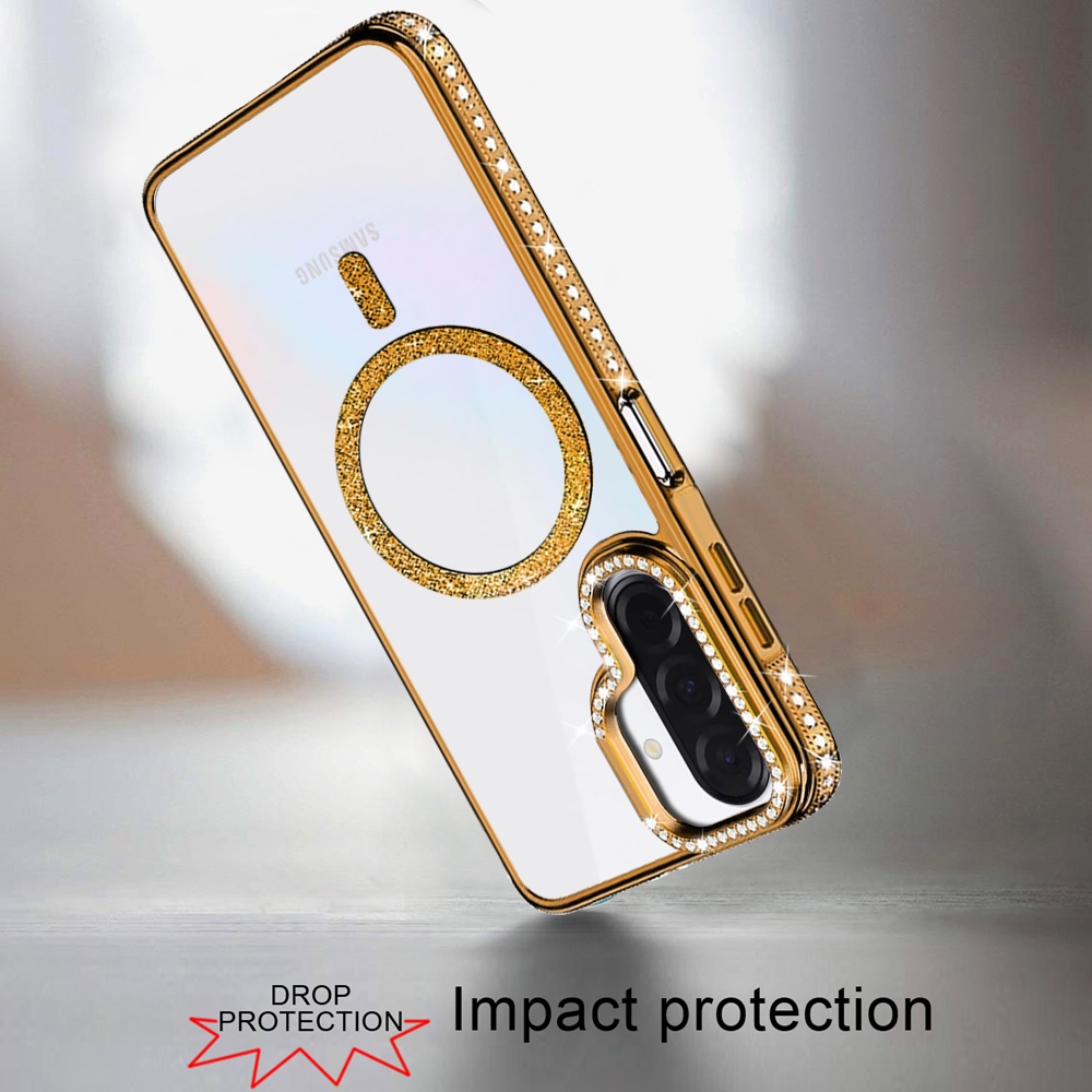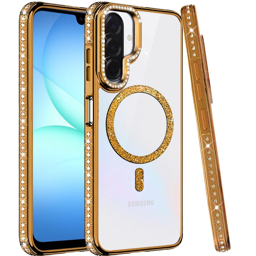 For Samsung A17 5G Luxury Diamond Edged Magnetic Glitter Circle Hybrid with Camera Stand - Gold
