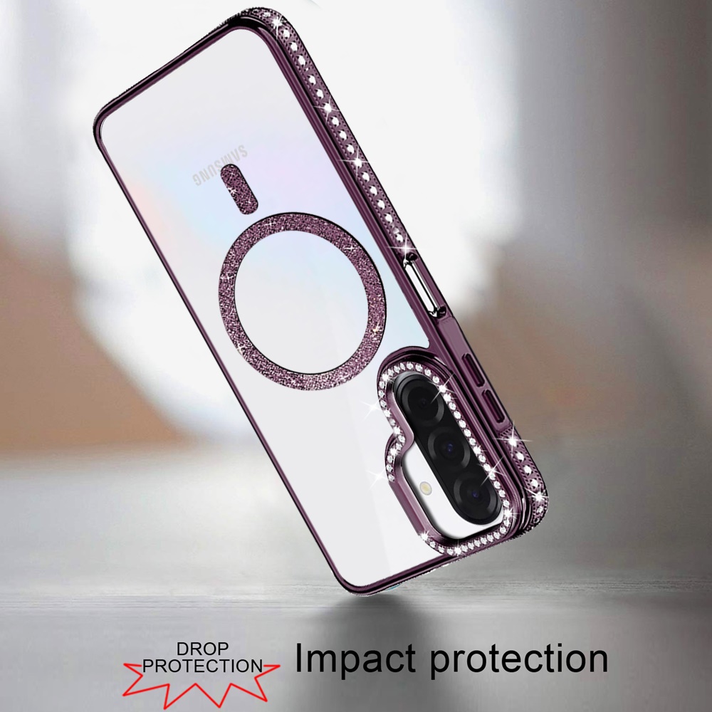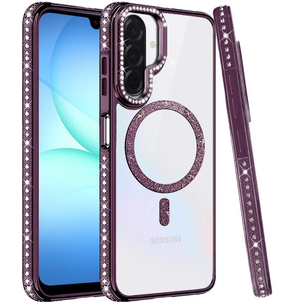 For Samsung A17 5G Luxury Diamond Edged Magnetic Glitter Circle Hybrid with Camera Stand - Dark Purple