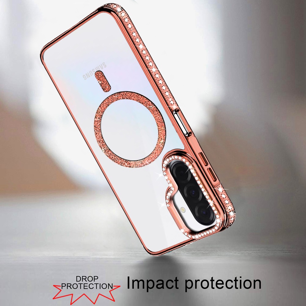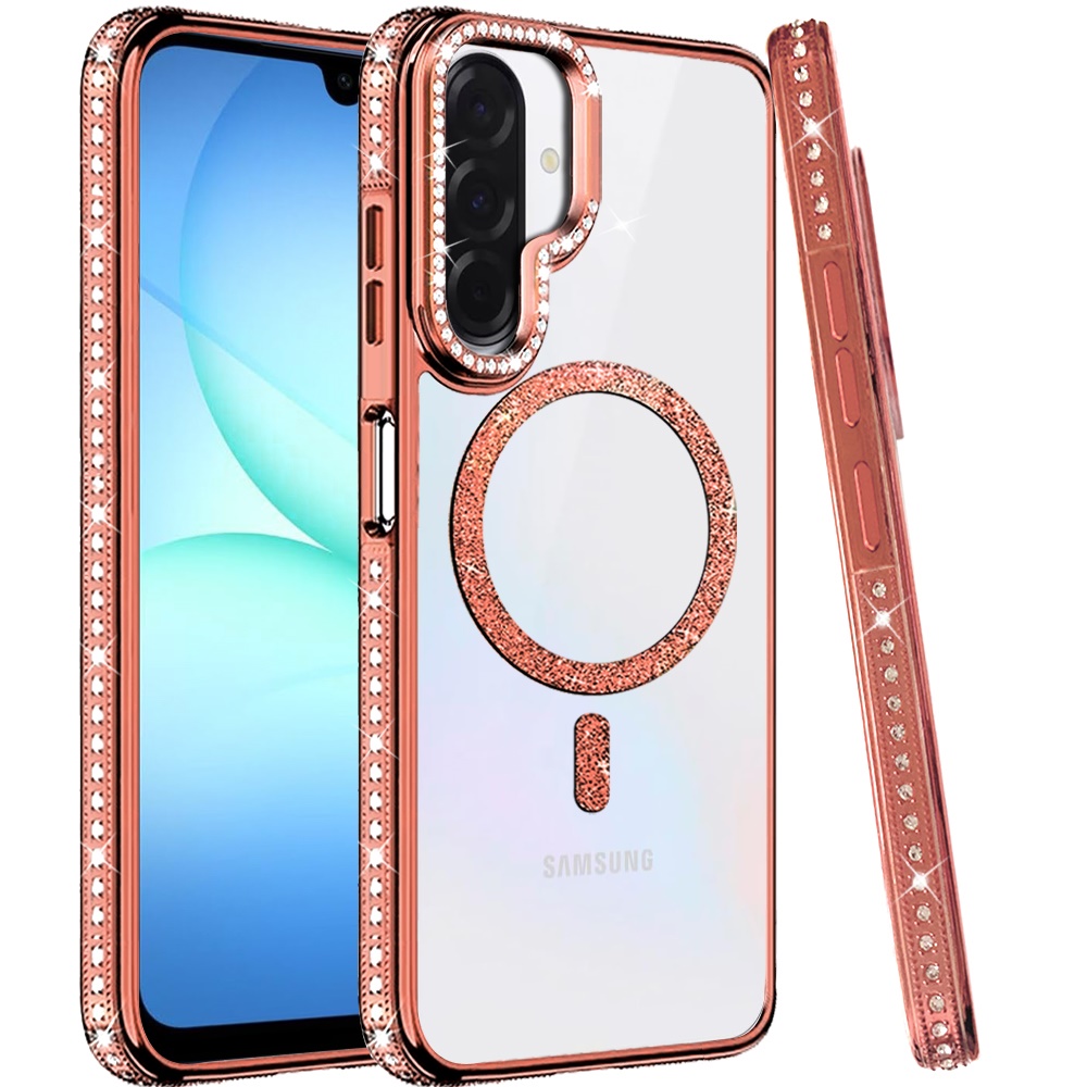 For Samsung A17 5G Luxury Diamond Edged Magnetic Glitter Circle Hybrid with Camera Stand - Rose Gold