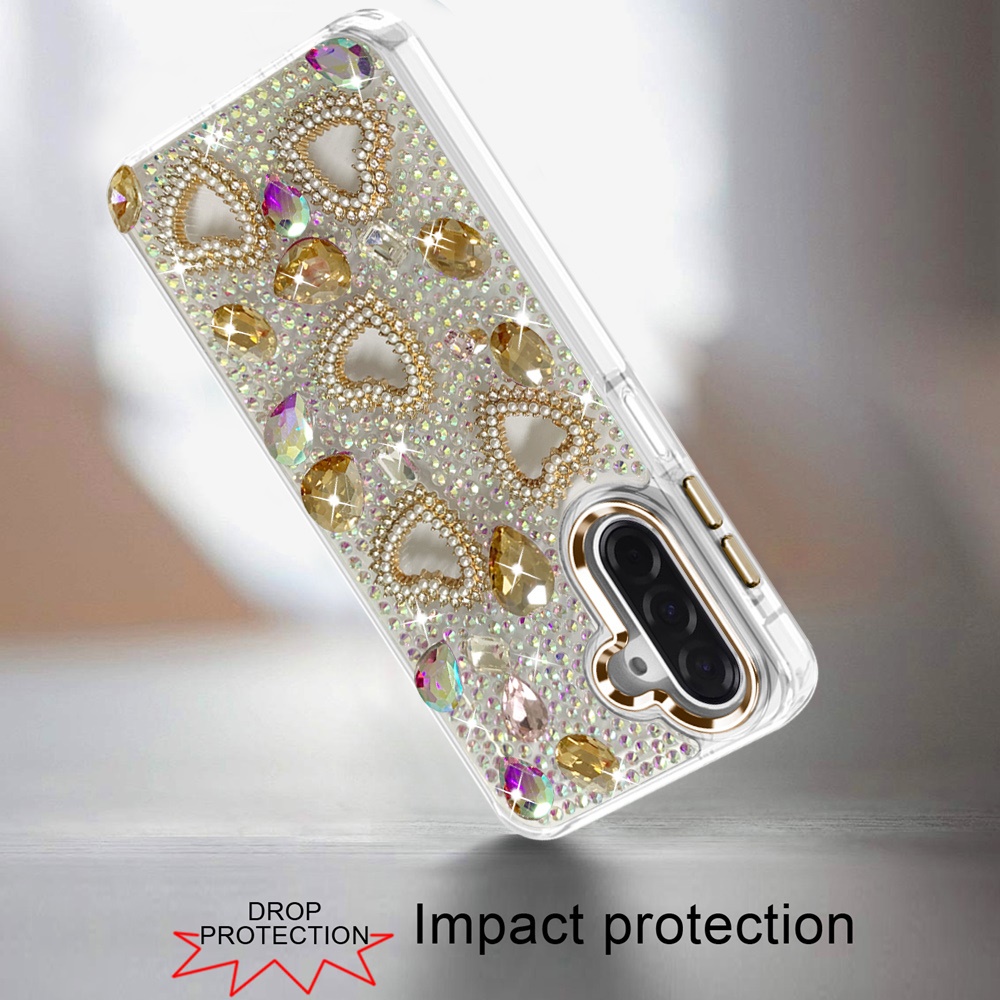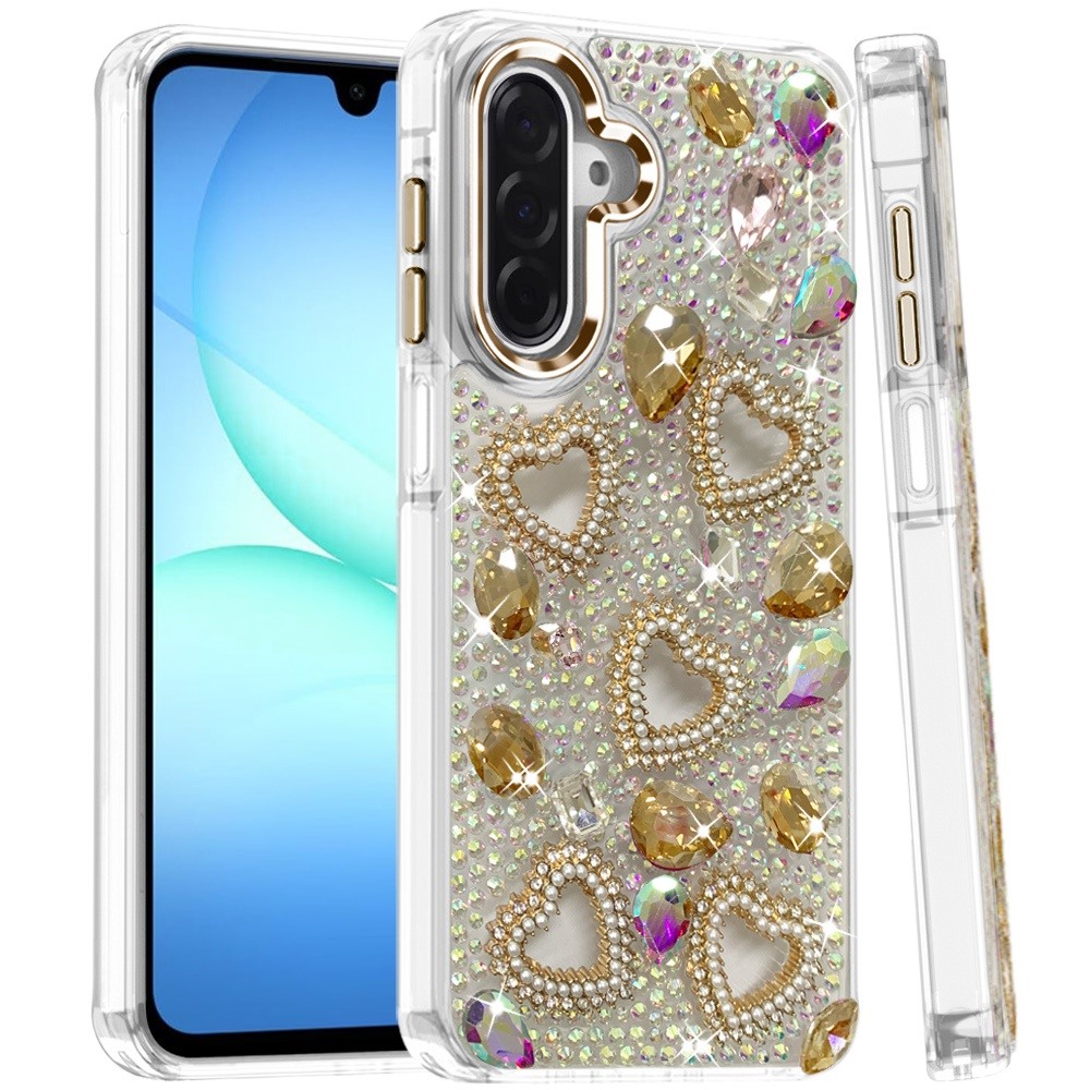 For Samsung A17 5G Luxury Crystal Heart Rhinestones Diamond Bling Hybrid Case - Gold