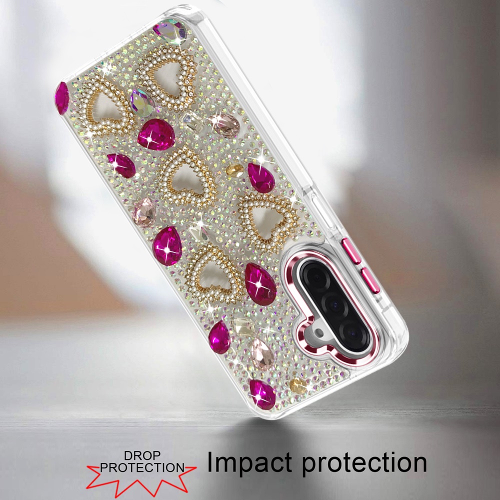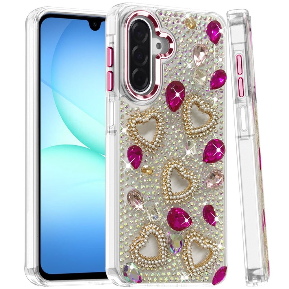 For Samsung A17 5G Luxury Crystal Heart Rhinestones Diamond Bling Hybrid Case - Hot Pink