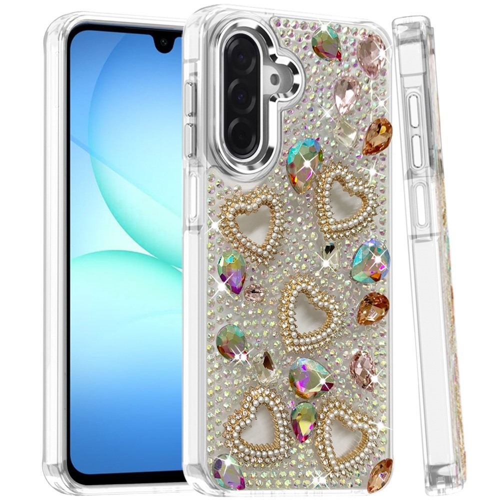 For Samsung A17 5G Luxury Crystal Heart Rhinestones Diamond Bling Hybrid Case - Multicolor