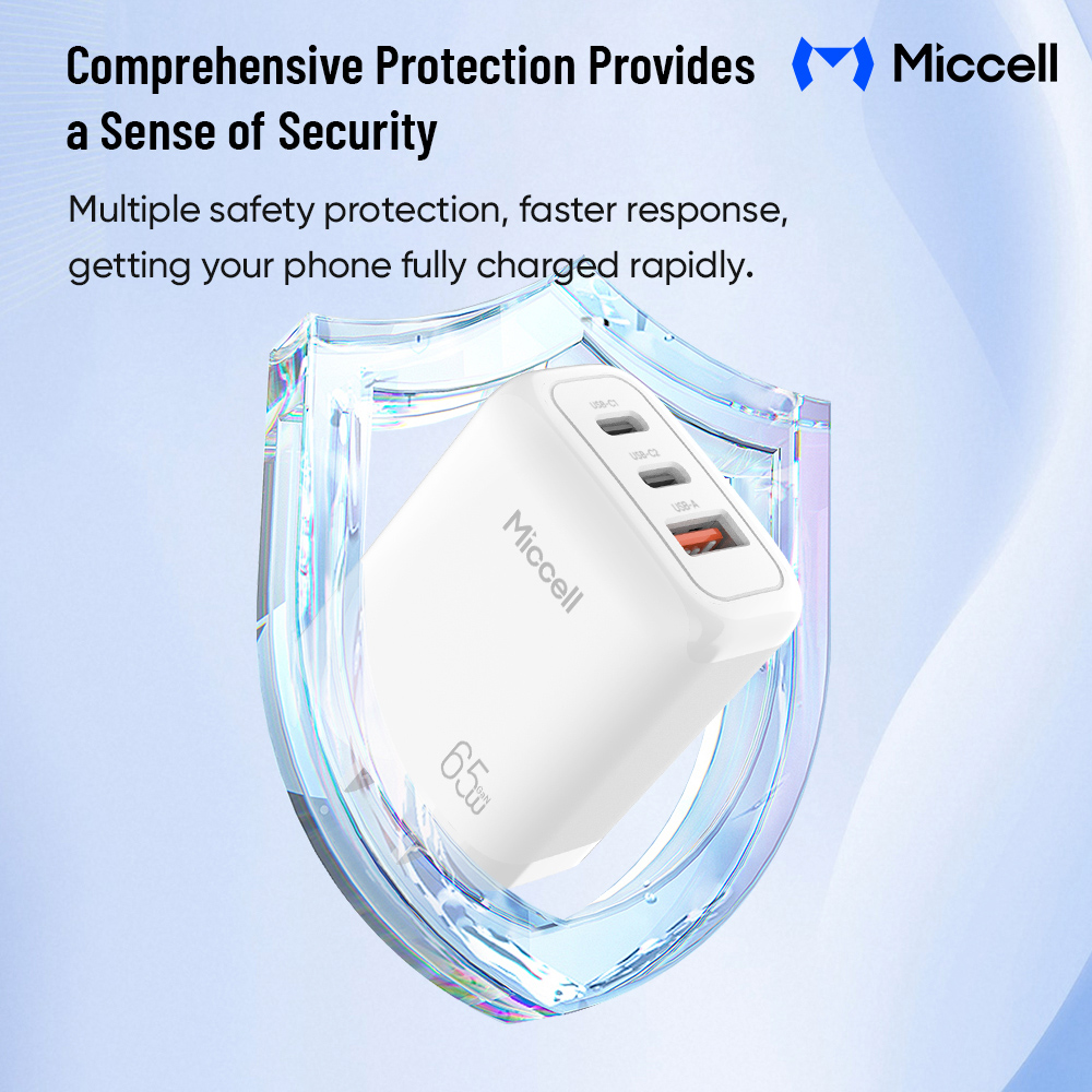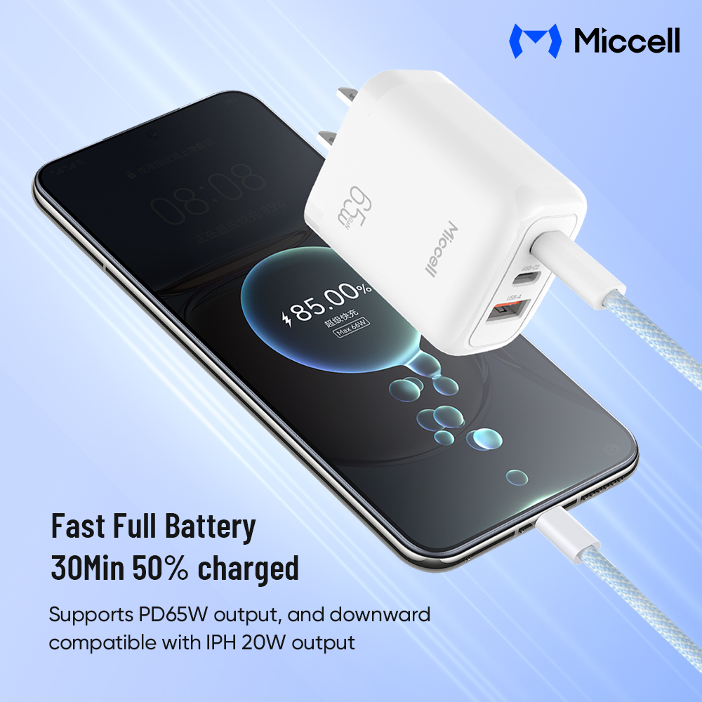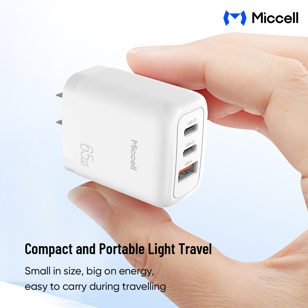 Miccell 65W Fast Wall Charger USB-C 1x USB-A with PD Charger Only - White (D19 MICCELL-2)