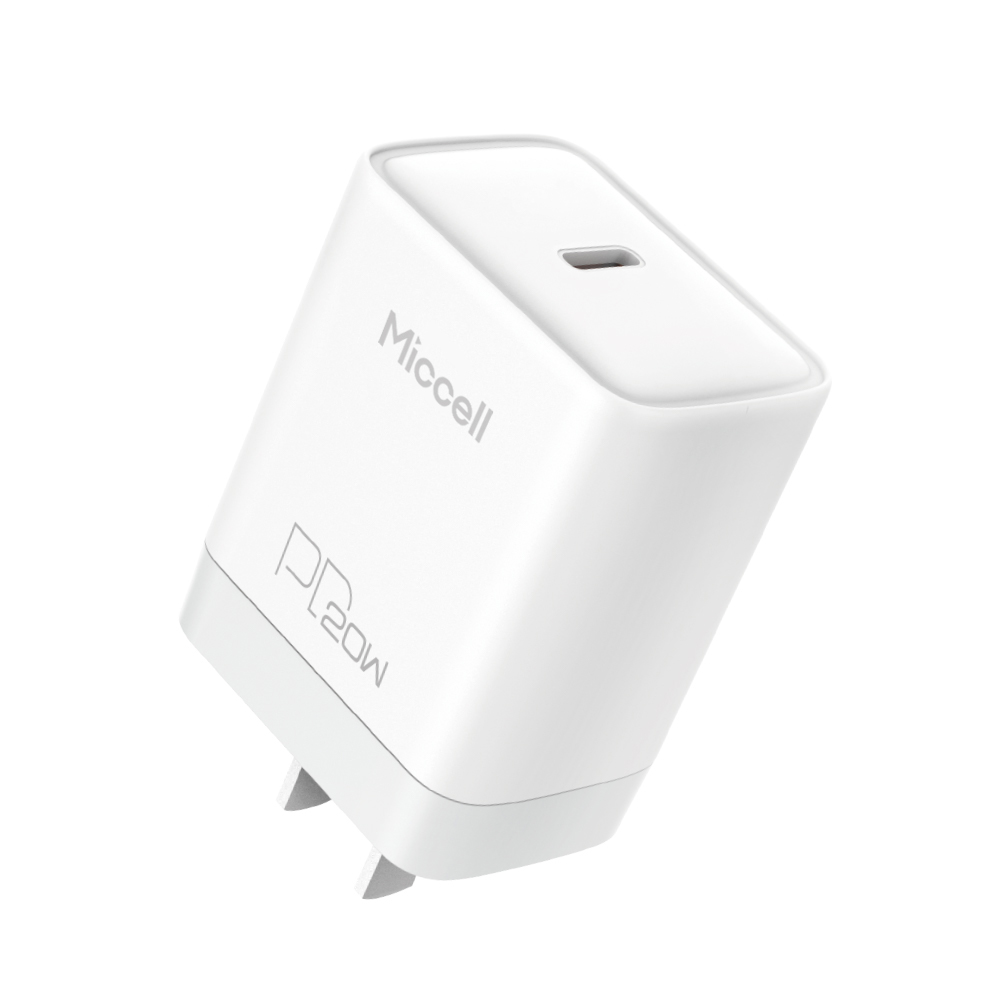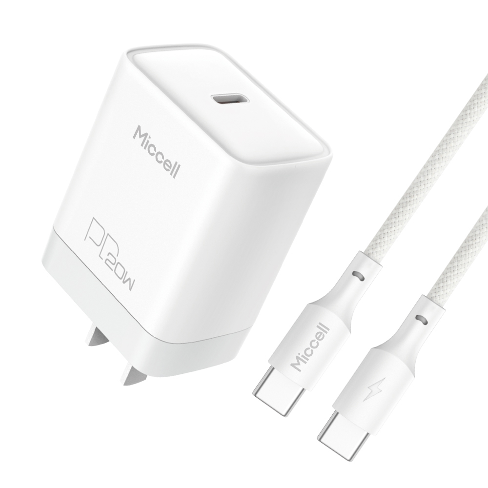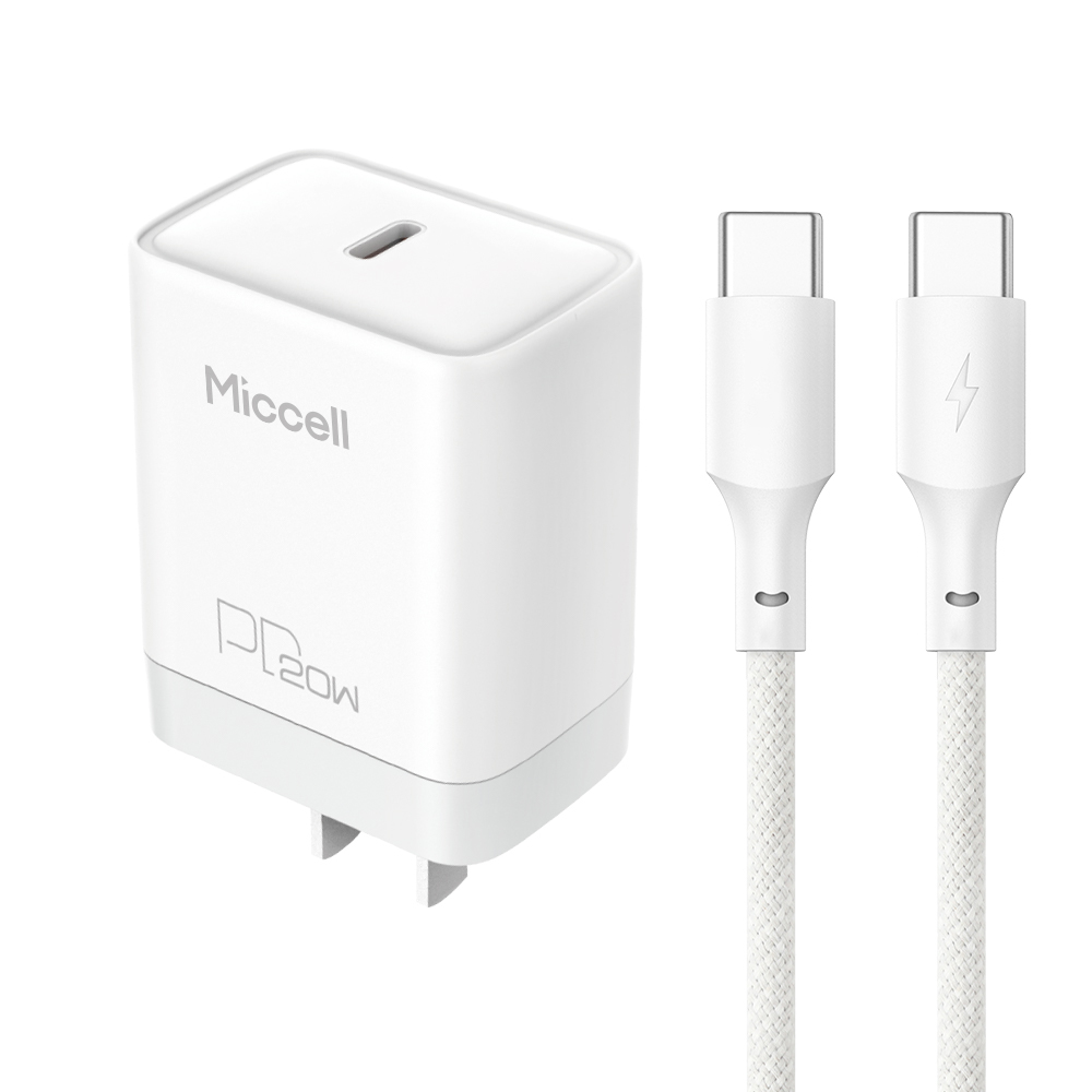Miccell 20W Fast Wall Charger COMBO - USB-C 1x USB-A with PD and Cable USB-C to USB-C - White (D19 MICCELL-4)