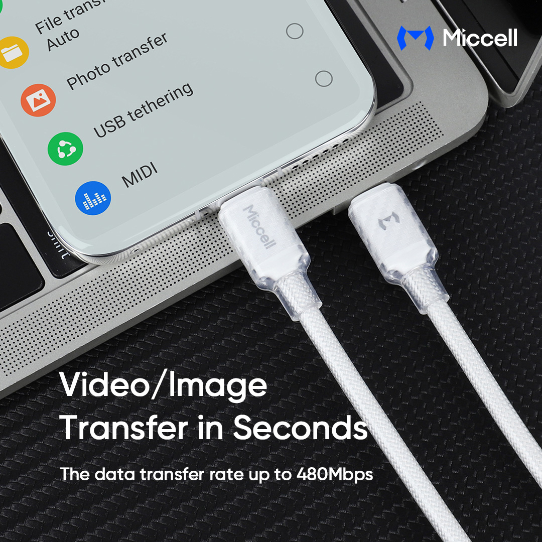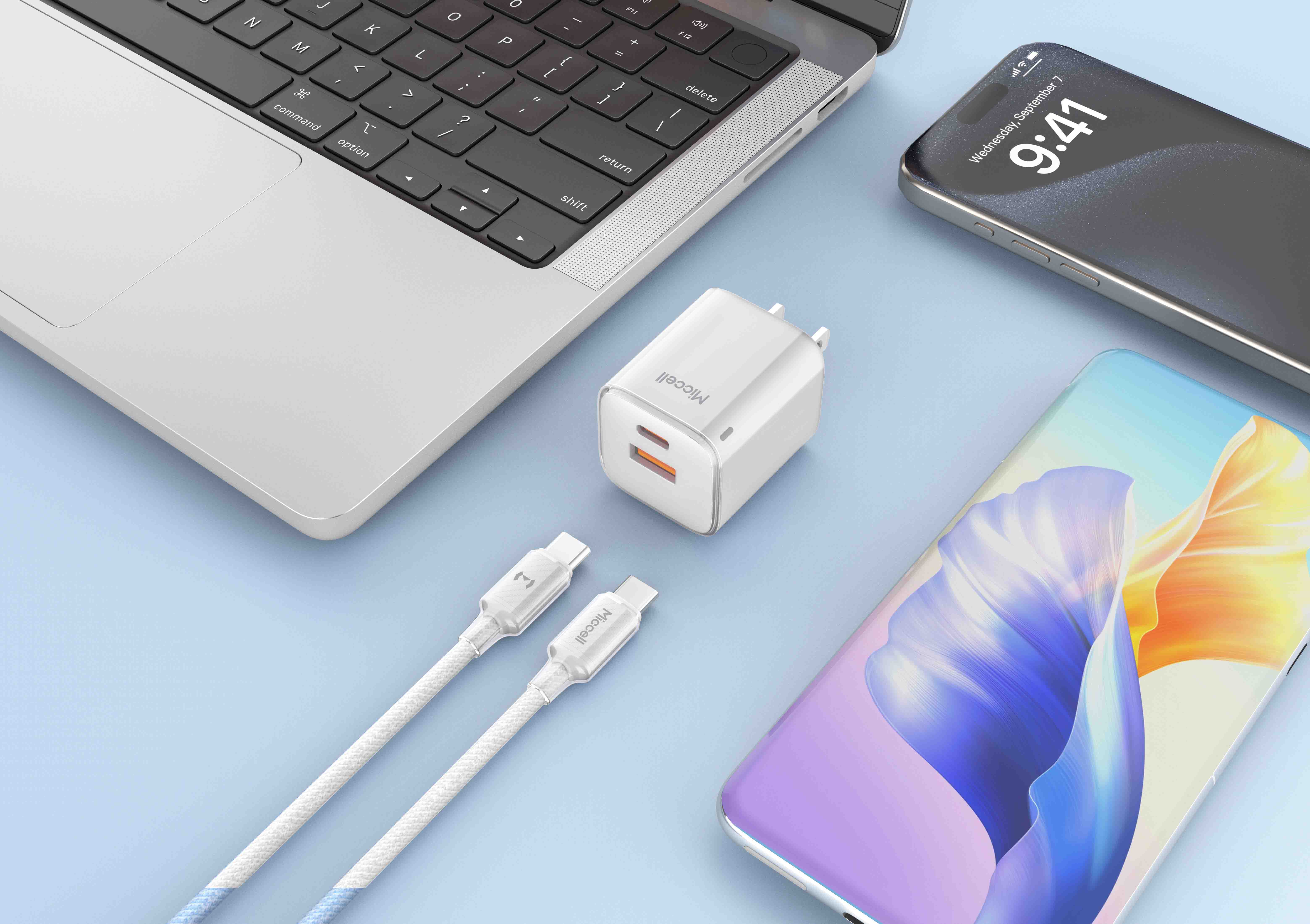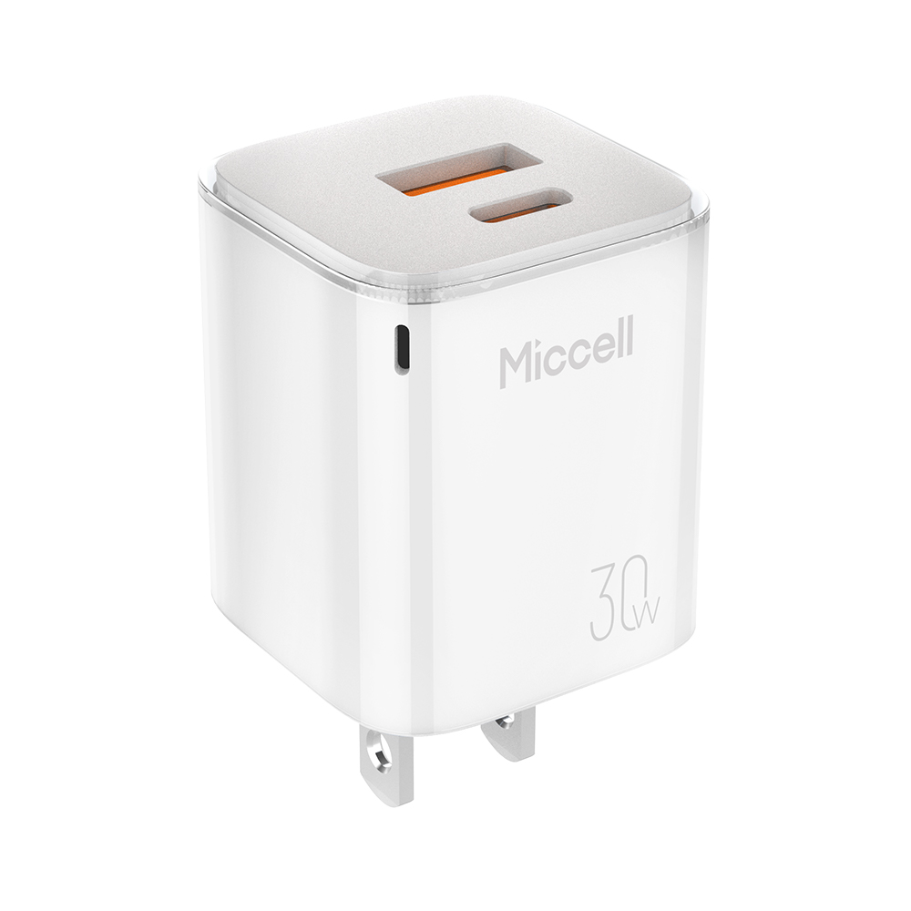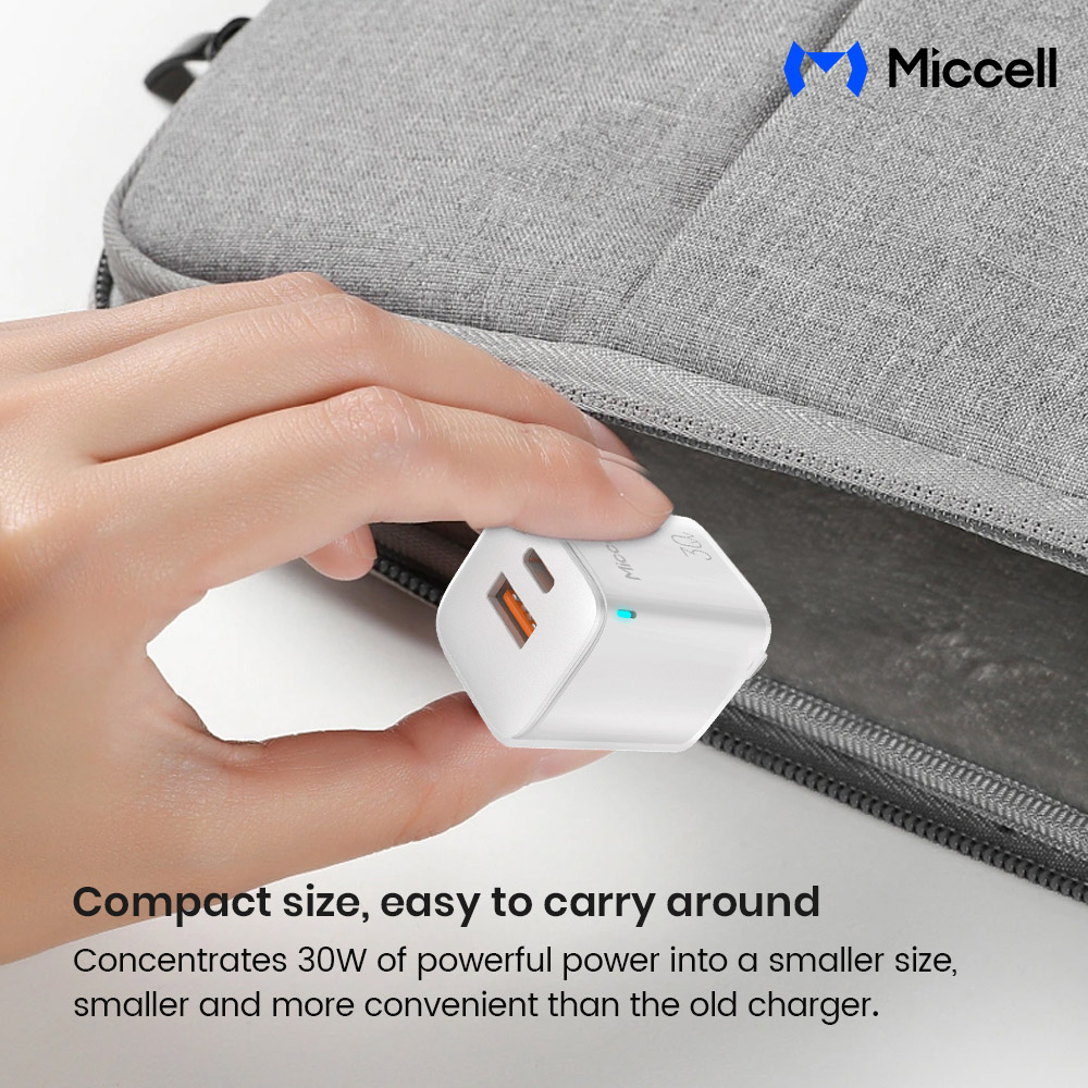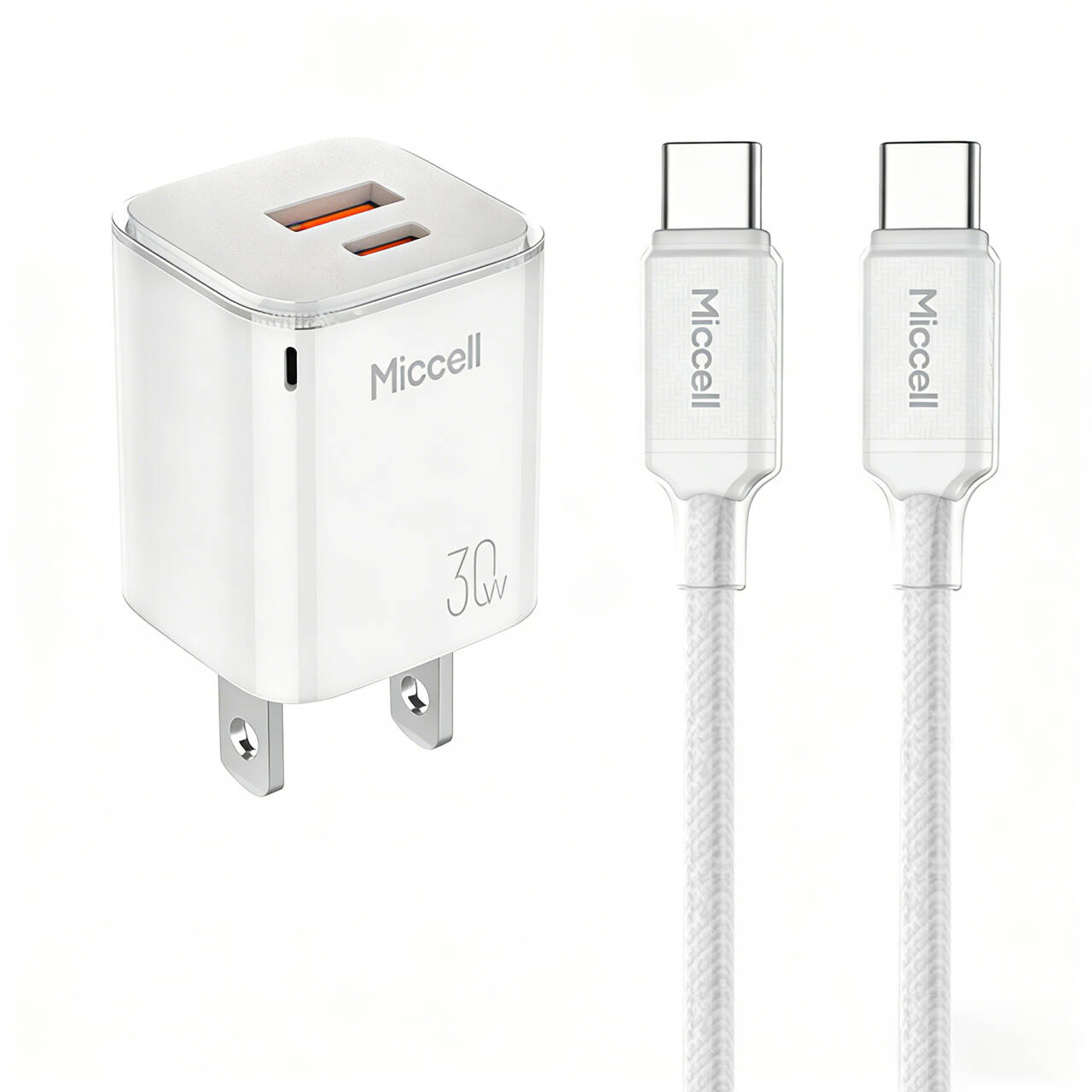 Miccell 30W Fast Wall Charger COMBO - USB-C 1X USB-A with PD and Cable 1M USB-C to USB-C - White (D19 MICCELL-3)