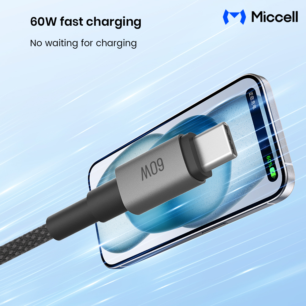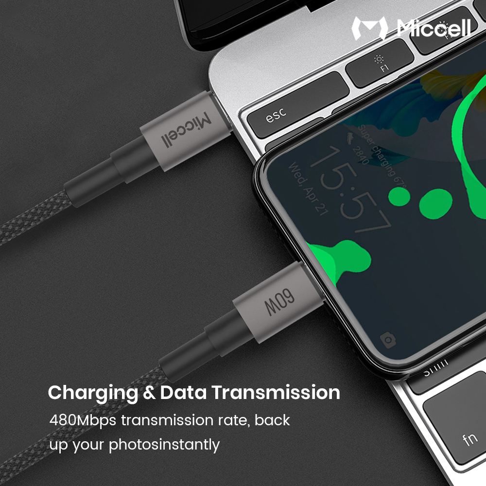Miccell 4FT 60W 12.M USB-C to USB-C Fast Charging Braided Cable - Black (D19 MICCELL-7)