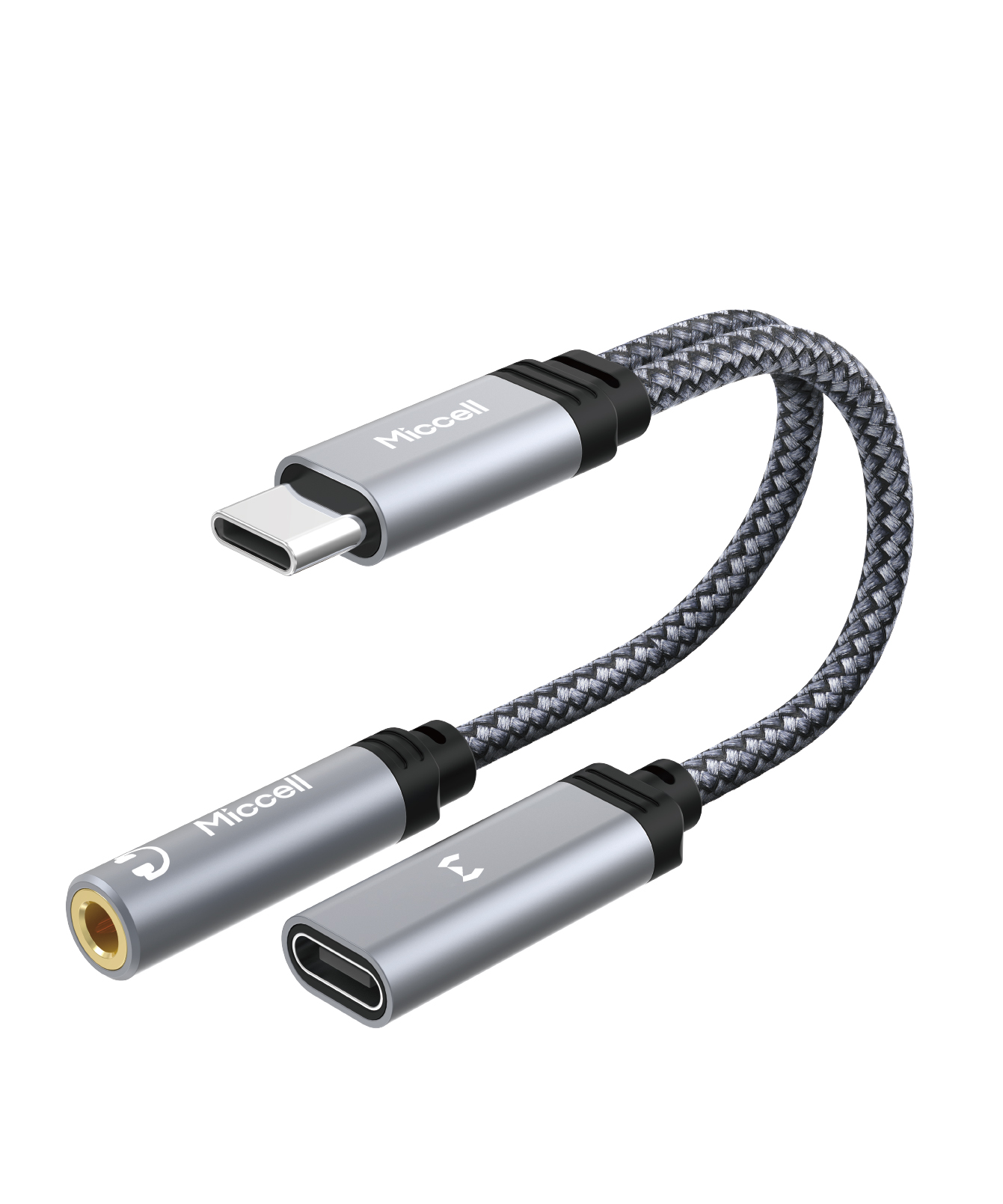 Miccell 10W USB-C to 3.5mm Female + USB-C Female Charging and Audio Nylon Braided Adapter - Gray (D19 MICCELL-9)