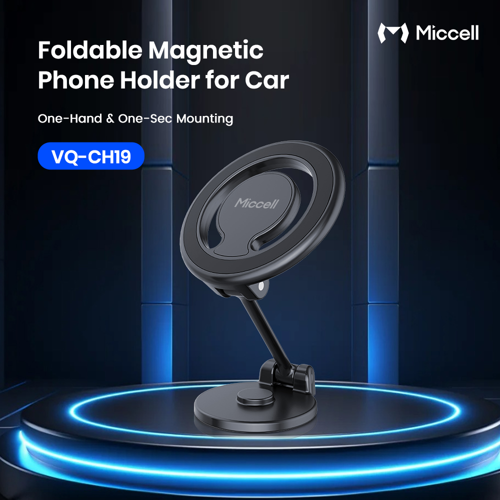 Micell VQ-CH19 Magnetic Car Phone Holder Slim Foldable Design - Black (D18 MICCELL-20)
