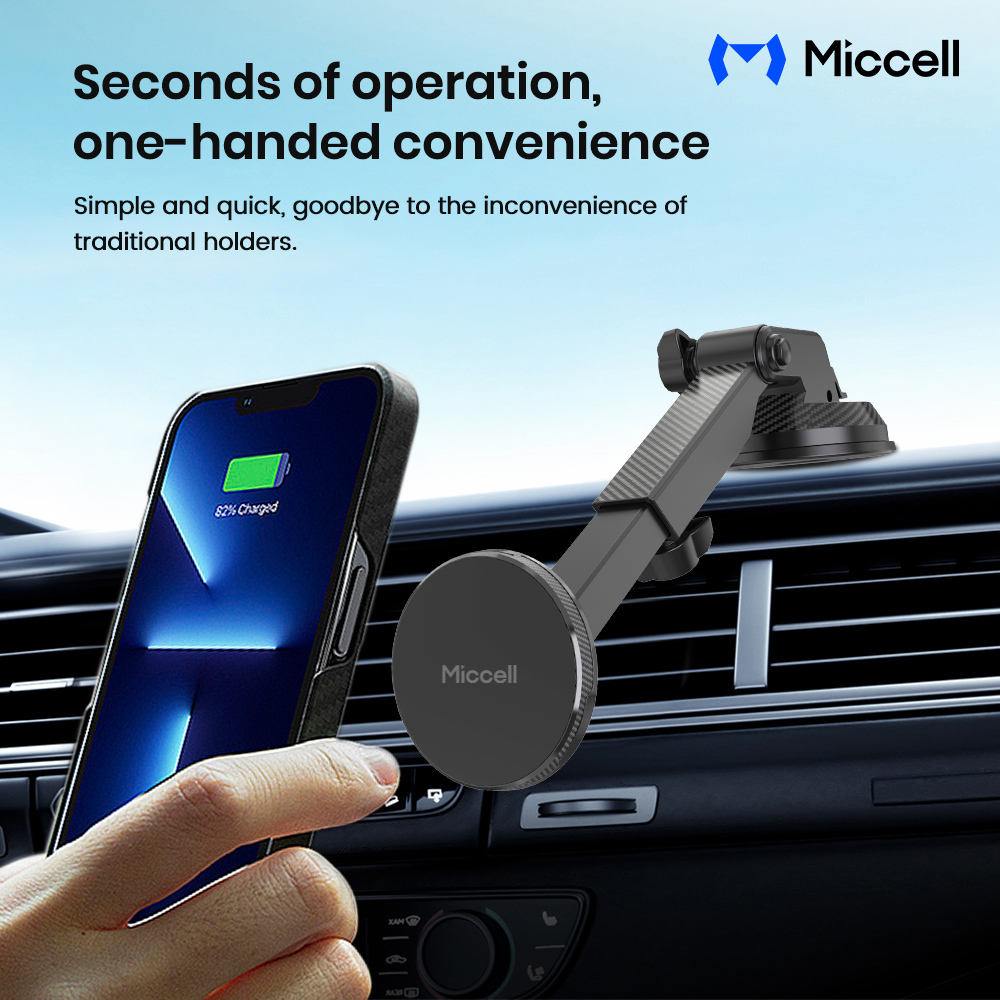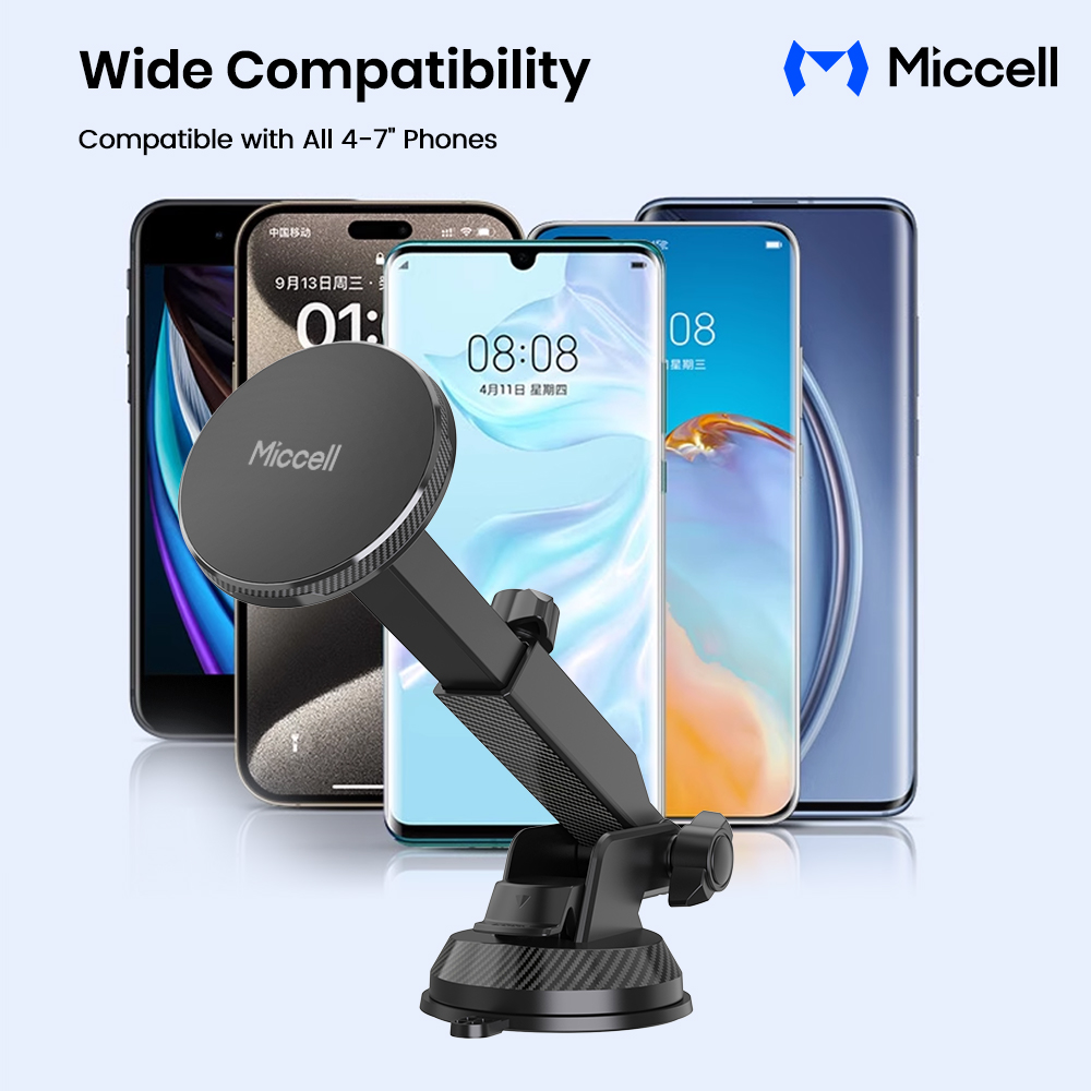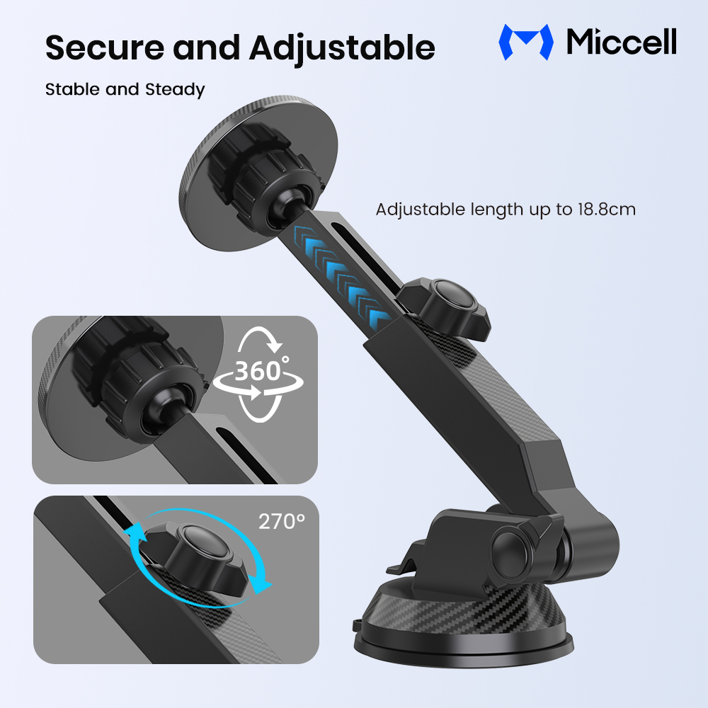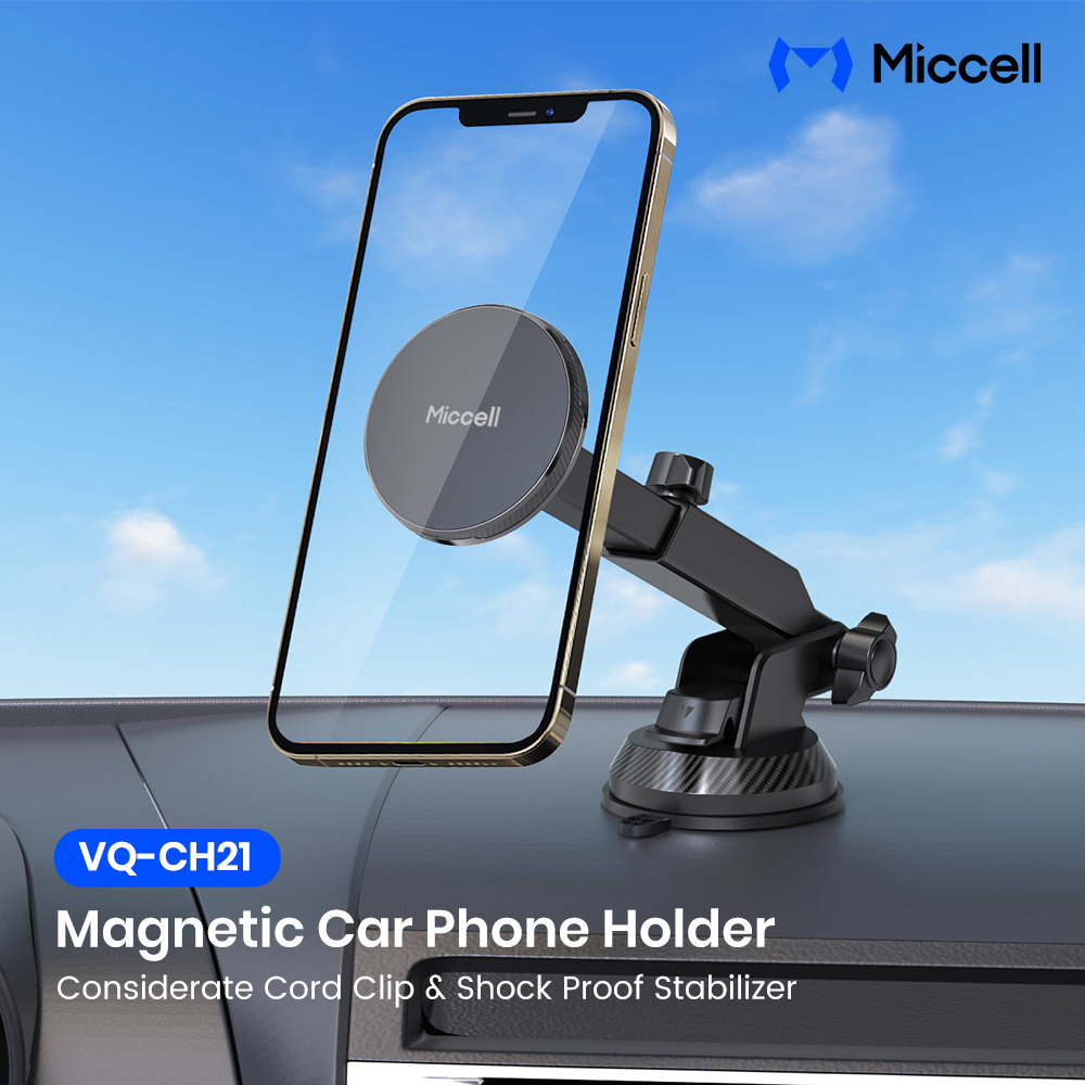 Mcell VQ-CH21 Magnetic Car Phone Holder Adjustable Telescopic Pole with Suction Cup - Black (D8 Miccell#21)