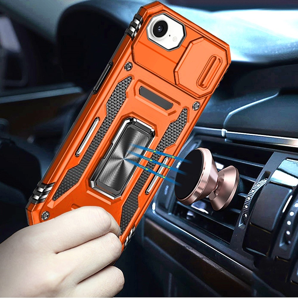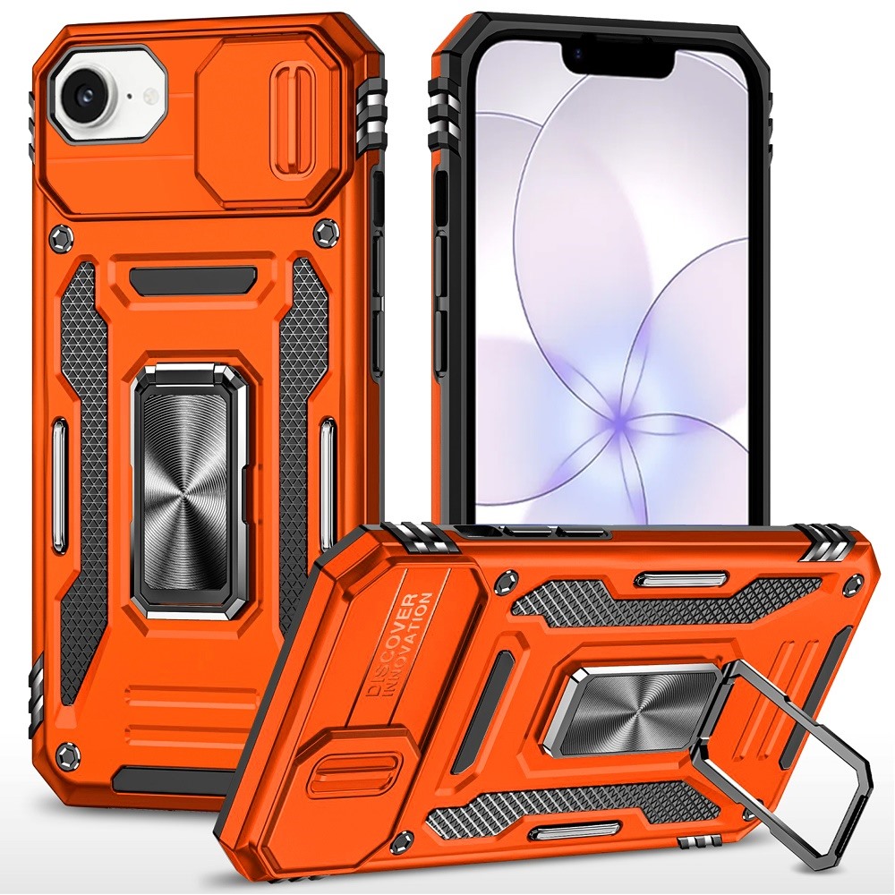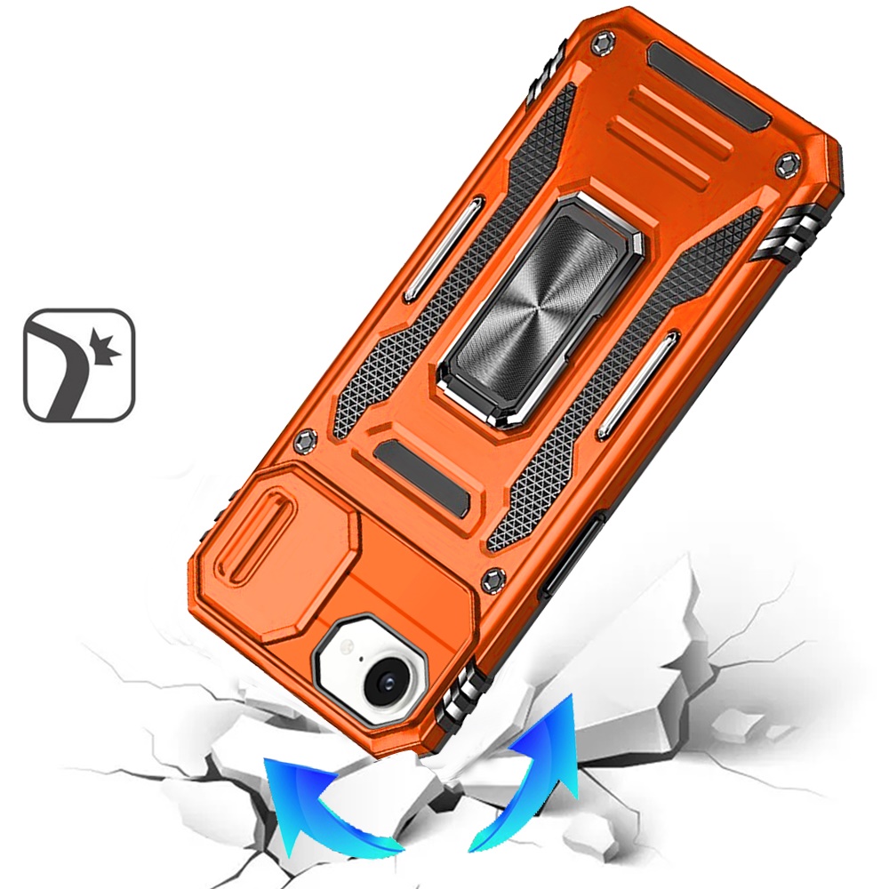 For iPhone 16E (E edition) / SE4 (2025) Utter Tough Metal Ring Movable Camera Window Hybrid Case Cover - Cosmic Orange