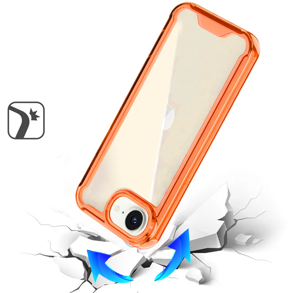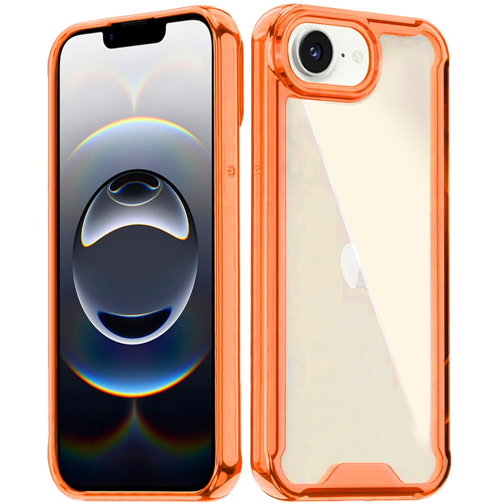 For iPhone 16E (E edition) / SE4 (2025) Colored Shockproof Transparent Hard PC TPU Hybrid Case Cover - Cosmic Orange