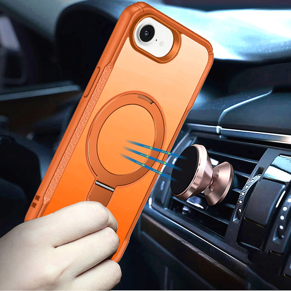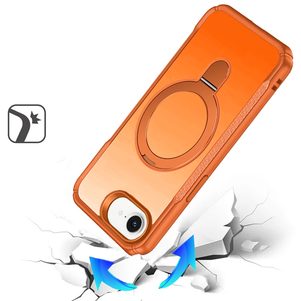 For iPhone 16E (E edition) / SE4 (2025) Matte Finish Simplified Magnetic Ring With Stand Hybrid Case - Cosmic Orange