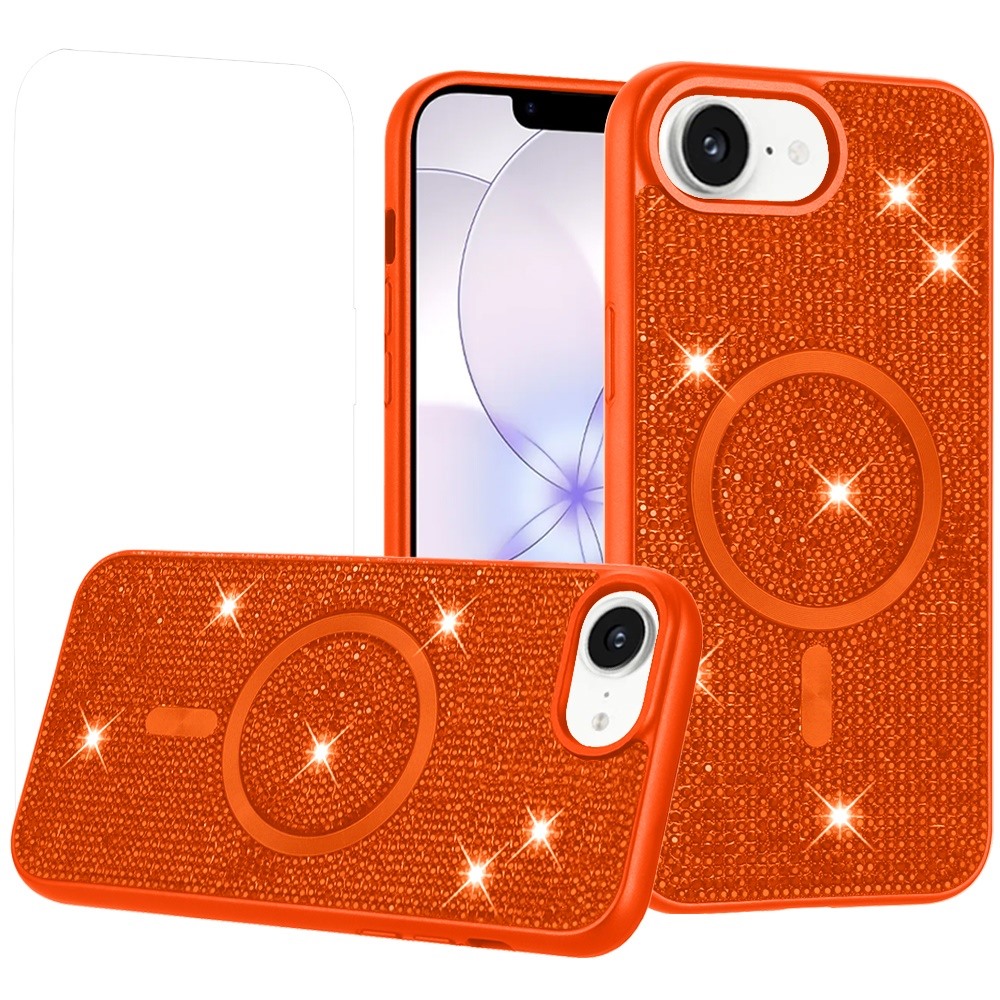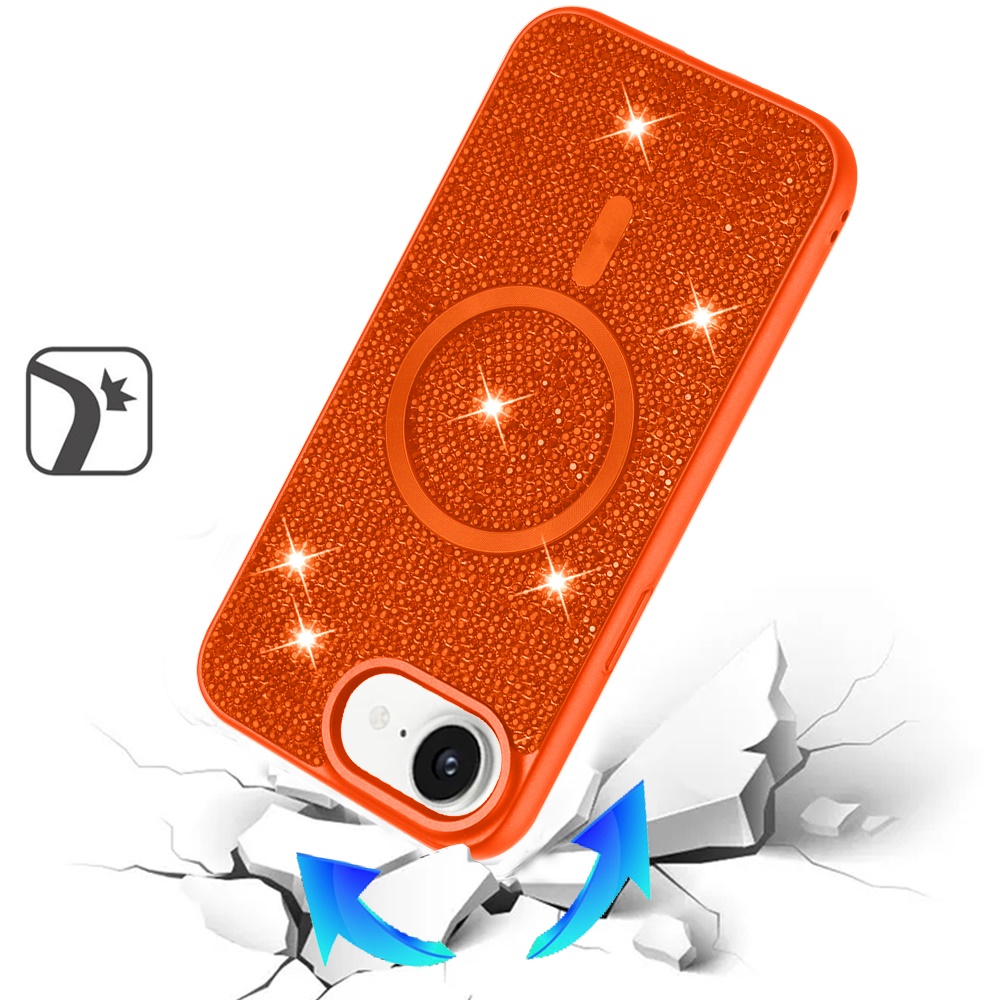 For iPhone 16E (E edition) / SE4 (2025) Diamond [Magnetic Circle] with CD Pattern Hybrid - Cosmic Orange