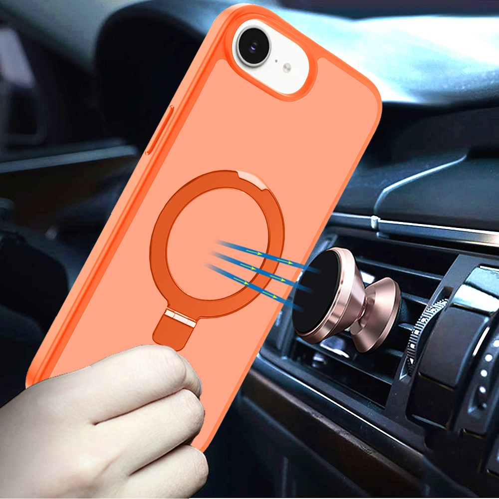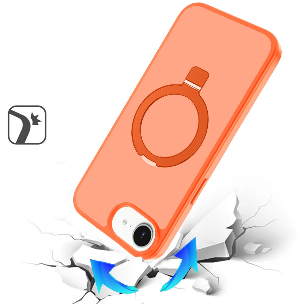 For iPhone 16E (E edition) / SE4 (2025) Magnetic Matching Ring Stand Full Rotation Matte Hybrid - Cosmic Orange