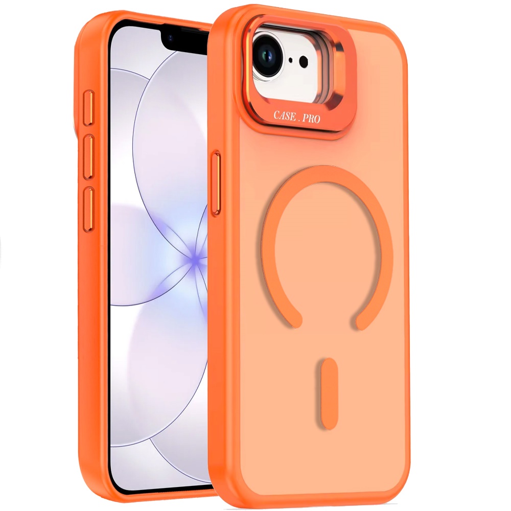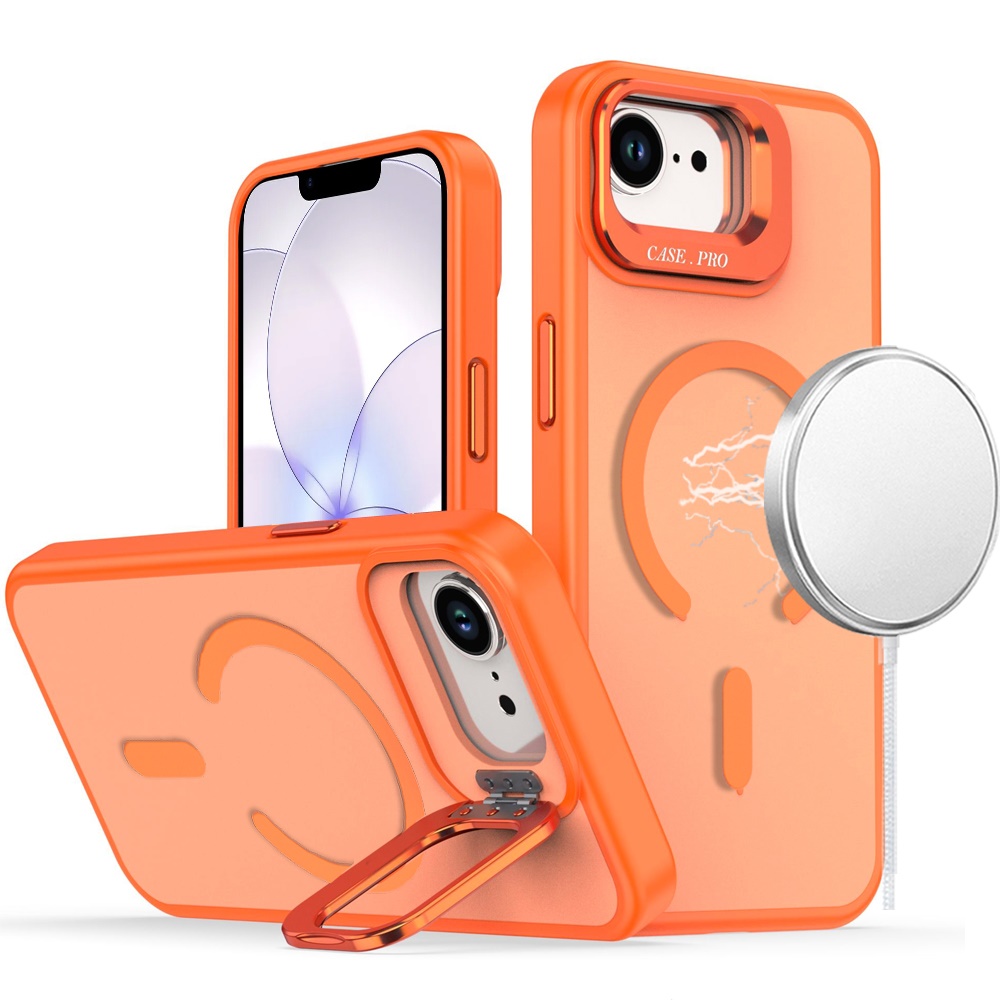 For iPhone 16E (E edition) / SE4 (2025) Magnetic Matte Camera Metallic Stand Hybrid Case - Cosmic Orange